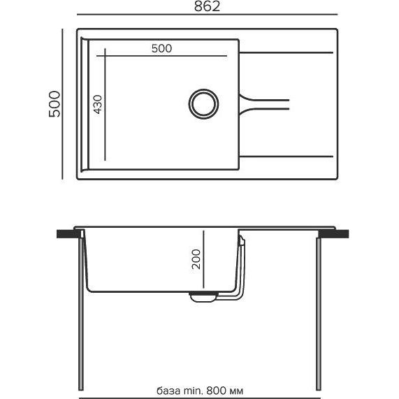 Мойка Polygran Gals 862 имеет размеры 86,2x50x20 см, а чаша — 50x43 см, что делает её вместительной и удобной для любых кухонных задач. Изделие поставляется со сливной арматурой и сифоном в комплекте, обеспечивая минимальные хлопоты при установке. Два намеченных отверстия под смеситель предоставляют гибкость в размещении сантехники. Диаметр слива 9 см, который снабжён корзинчатым вентилем для удобства ухода за мойкой. Важно, что изделие не имеет готовых отверстий, что даёт возможность индивидуальной адаптации под нужды пользователя.