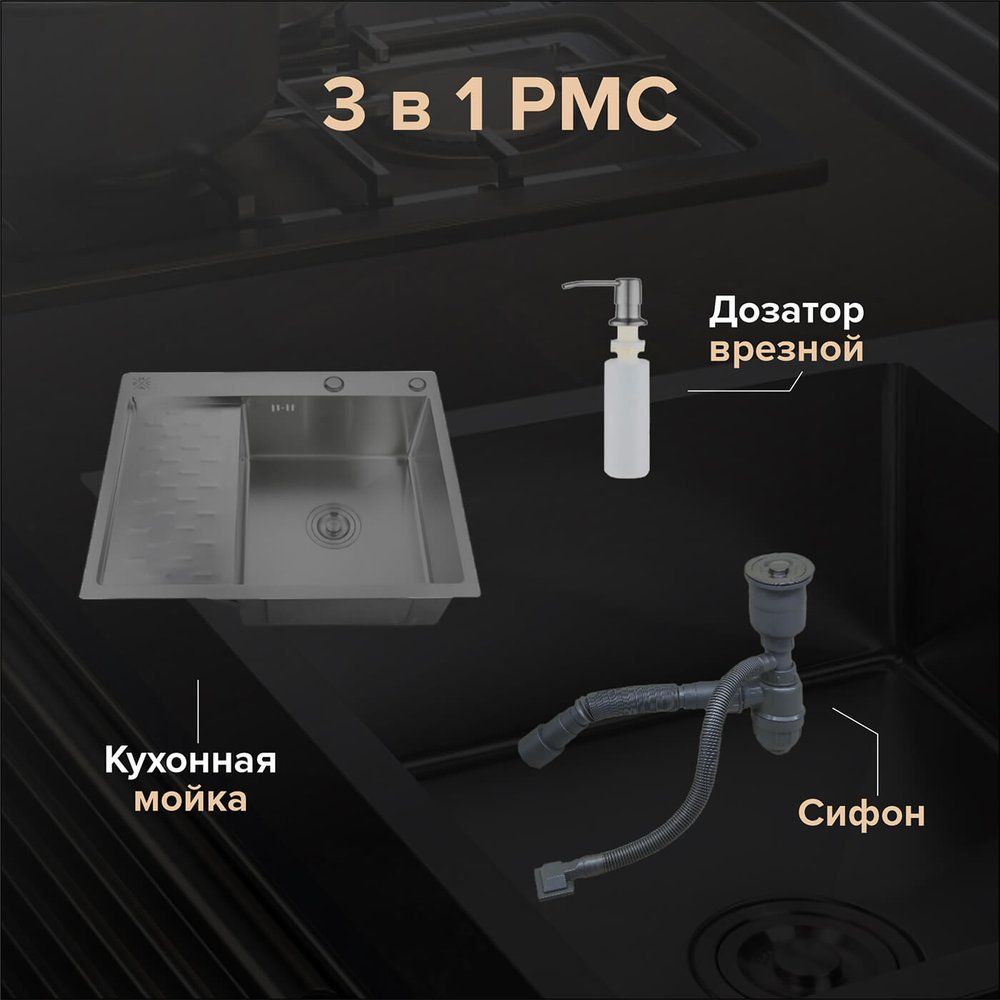Мойка кухонная РМС MRK-6350BL-R с дозатором в цвете графит — это идеальное сочетание функциональности и стильного дизайна для вашей кухни. Изготовленная из нержавеющей стали, она обладает прочностью и долговечностью. Матовая поверхность подчеркивает современный стиль и легко сочетается с остальными элементами кухонного интерьера. Глубокая чаша и ширина мойки обеспечивают удобство использования, а интегрированный дозатор добавляет практичности.
