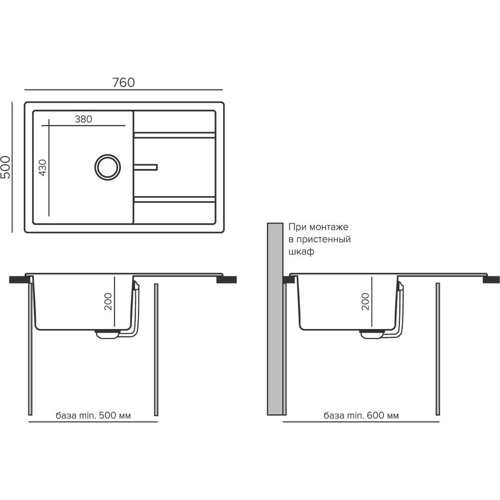 Кухонная мойка имеет размеры 76x50x20 см, с вместительной чашей 38x43 см, что позволяет удобно мыть большие кастрюли и сковородки. Она встраивается выше уровня столешницы для упрощенной установки. Мойка оснащена сливом-переливом и корзинчатым вентилем с диаметром слива 9 см. Продукт выпускается в России и имеет надежную гарантию сроком на 5 лет.