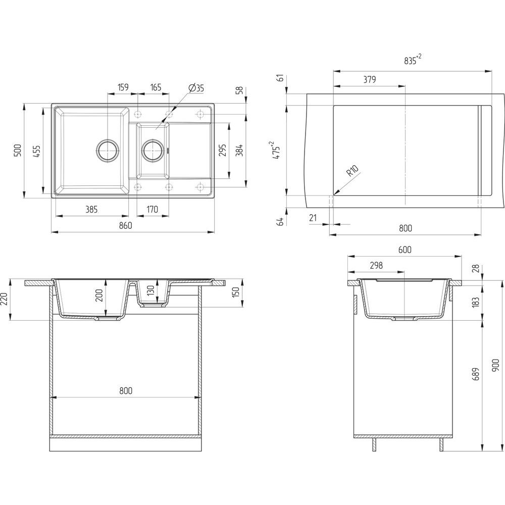 Мойка имеет габариты 86x50x22 см и чаша размером 38,5x45,5 см, что обеспечивает комфортное использование. Она встраивается выше уровня столешницы, добавляя стильному интерьеру пространства. Диаметр слива составляет 9 см, что подходит для большинства кухонных решений. Хотя мойка не имеет готовых отверстий, предусмотрено 6 намеченных для установки смесителя. В комплект также входит сливная арматура и сифон.