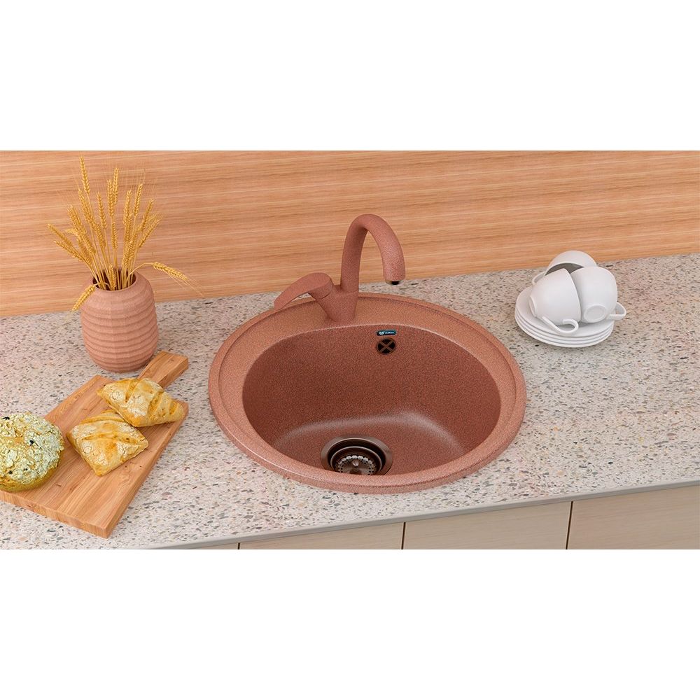 Кухонная мойка Ulgran U-101 в терракотовом цвете станет центром внимания на вашей кухне. Это не только эстетичное, но и крайне практичное решение благодаря прочному искусственному мрамору, из которого изготовлено изделие. Круглая чаша с удобным, слегка шероховатым дном оборудована современным сливом-переливом и корзинчатым вентилем, которые предотвратят засоры. Также предусмотрено отверстие для смесителя. Гелькоутовое покрытие защищает мойку от скользкого налета и неприятных запахов, а также предотвращает появление царапин и выгорание от солнечных лучей, делая ее легкой в уходе.