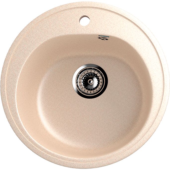 Кухонная мойка имеет габариты 50x50x18 см, а её вместительная чаша — 38x36,5 см, что позволяет комфортно мыть крупные предметы. Она устанавливается сверху столешницы, создавая современный и стильный внешний вид. Искусственный мрамор с матовой отделкой обеспечивает приятные тактильные ощущения. В комплекте поставляются слив-перелив и корзинчатый вентиль с диаметром слива 9 см, а также сливная арматура. Мойка имеет одно отверстие под смеситель. Продукт произведен в России и имеет гарантию 4 года.