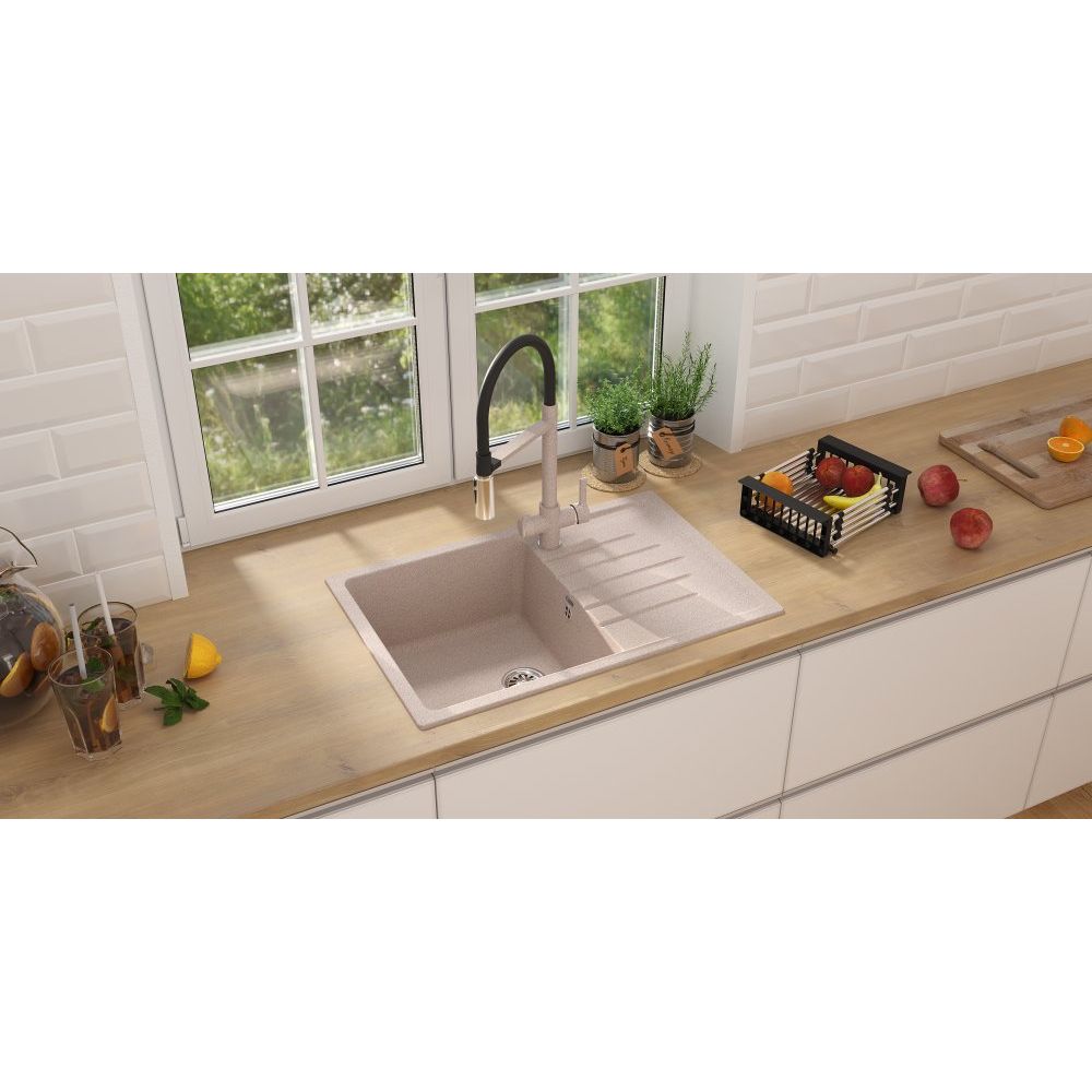 Кухонная мойка Ulgran U-400-302 в песочном цвете - это идеальное решение для тех, кто ценит стиль и практичность в интерьере своей кухни. Изготовленная из искусственного мрамора, мойка не только долговечна, но и безопасна для здоровья благодаря использованию акриловых смол. Такая комбинация материалов обеспечивает прочность, превосходящую натуральный мрамор. Двухконтурная конструкция чаши с шероховатым дном уменьшает брызги и шум даже при сильном напоре воды, а гладкие стенки защищают от скопления грязи и размножения бактерий.