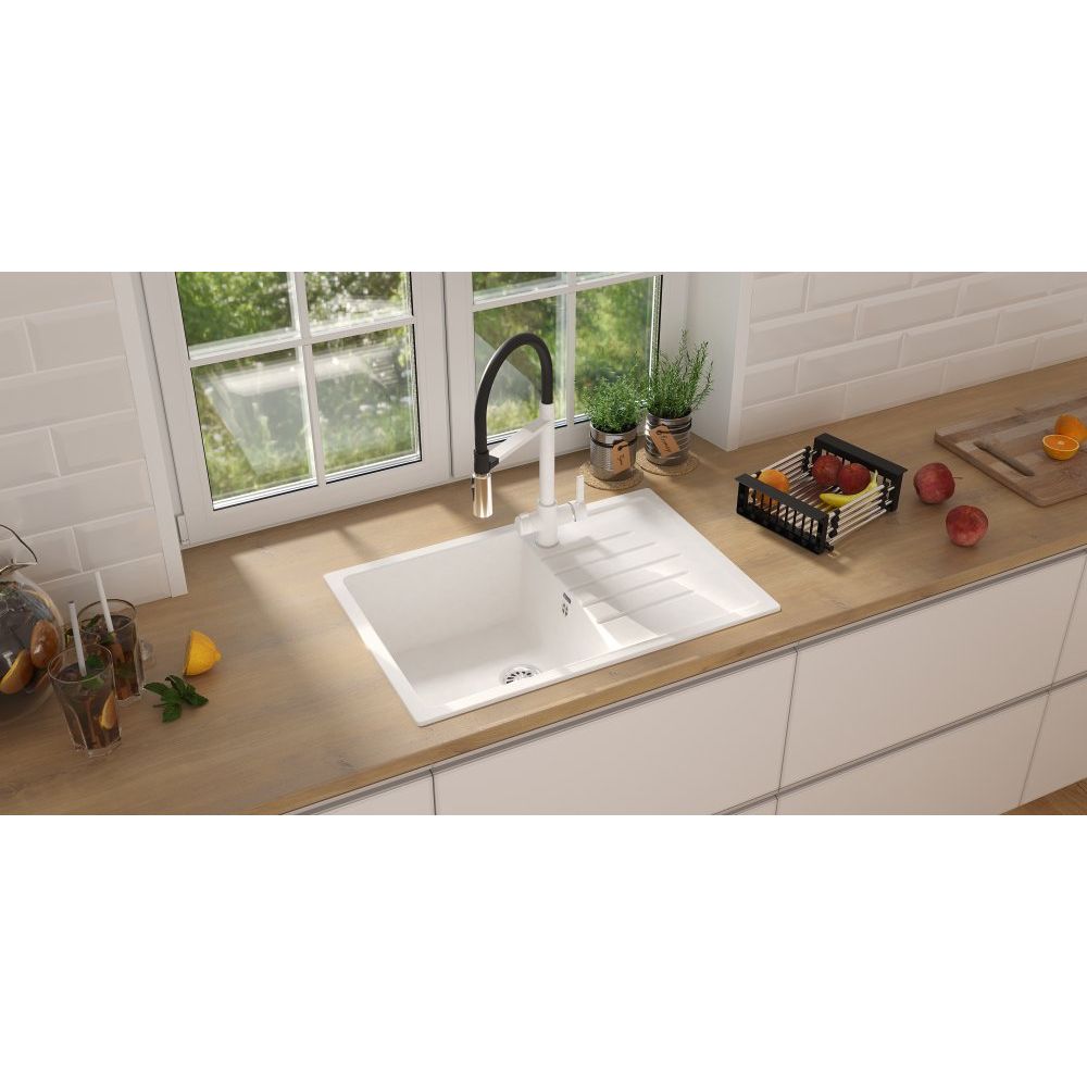 Мойка кухонная Ulgran U-400 -341 в ультра-белом цвете — это идеальное сочетание универсального дизайна и передовых технологий. Изготовленная из искусственного мрамора, она обеспечивает долговечность и великолепное шумоподавление, что делает ее идеальным выбором для современной кухни. Совершенная эргономика прямоугольной чаши с гладкими стенками и шероховатым дном минимизирует разбрызгивание воды и обеспечивает комфорт при мытье посуды. Гелькоут-покрытие добавляет гигиеничности и защищает поверхность от пищевых красителей, а встроенный слив-перелив и корзинчатый вентиль обеспечивают безопасность эксплуатации.
