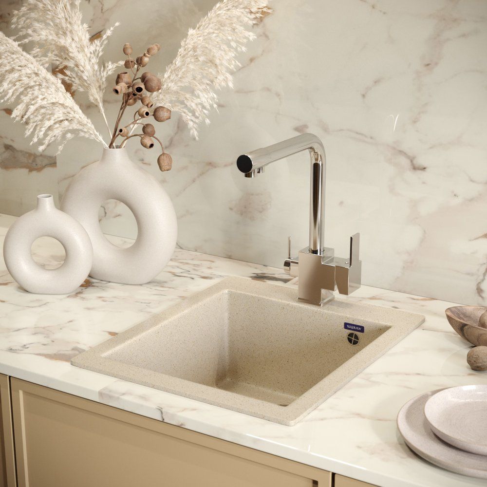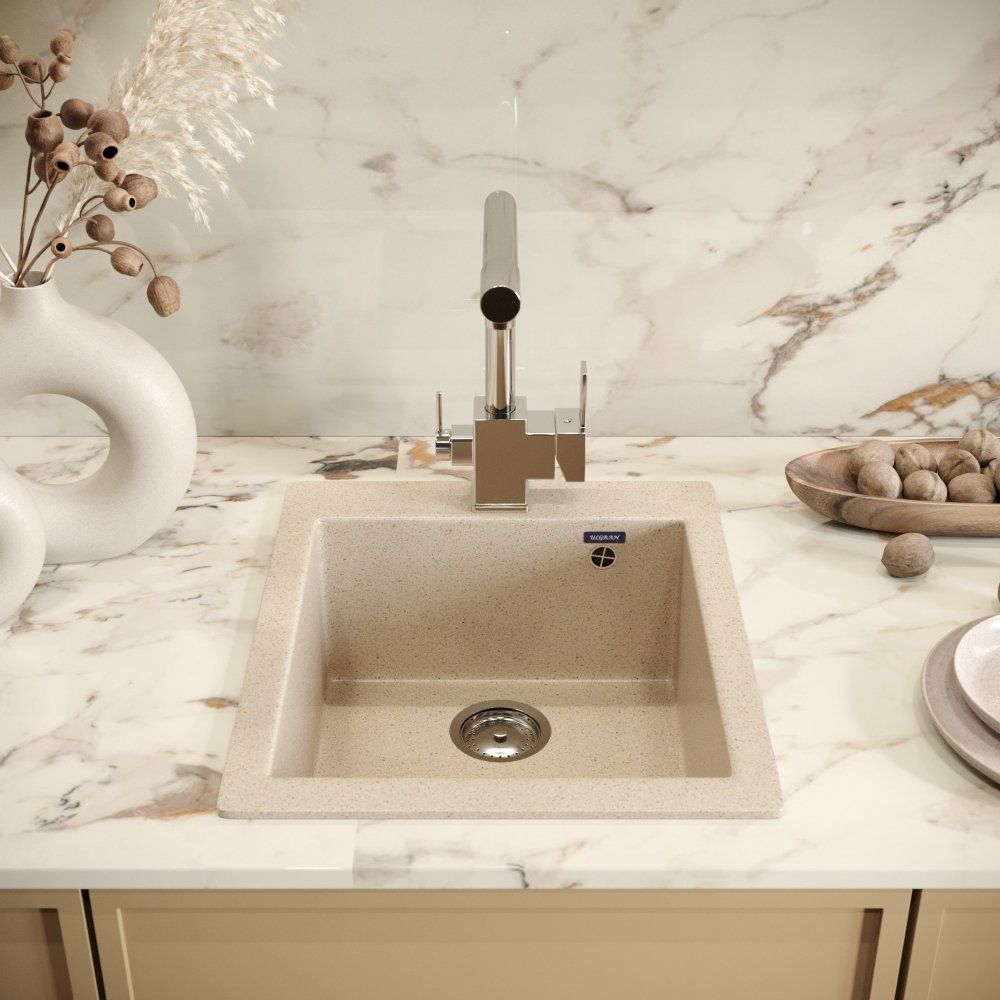 Кухонная мойка Ulgran U-404-302 в изысканном песочном оттенке станет настоящим украшением вашей кухни. Изготовленная из искусственного мрамора, она объединяет передовые материалы с уникальным дизайном, обеспечивая надежность и долговечность. Искусственный мрамор обладает выдающимся качеством износостойкости: он прочнее натурального материала, его поверхность не подвергается царапинам и не выгорает. Благодаря особому декоративно-защитному слою гелькоута, мойка также легко очищается от загрязнений и защищена от бактерий.