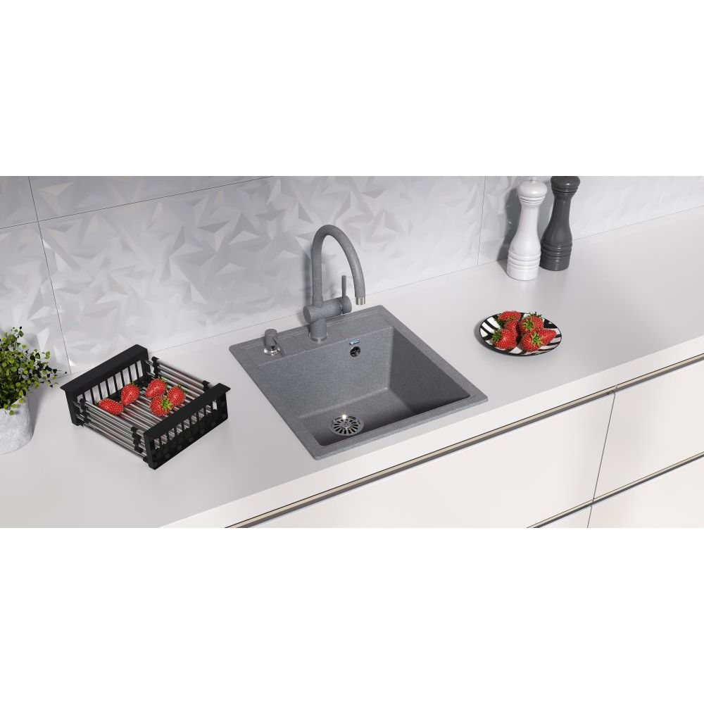 - Стиль и качество: Графитовая отделка и материал из искусственного мрамора обеспечивают как стильный внешний вид, так и долговечность изделия.