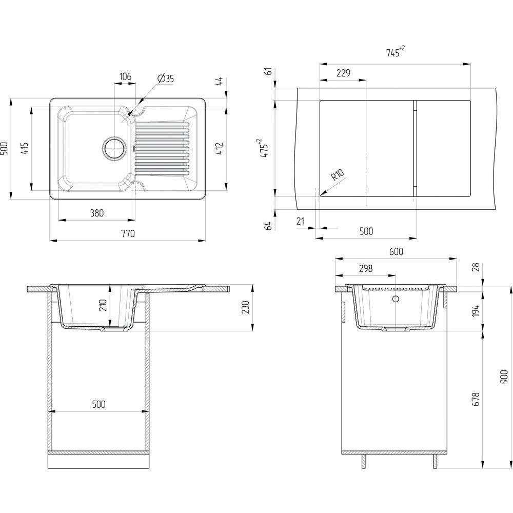 Габариты мойки составляют 77x49,5x22 см, а чаша имеет размеры 38x41,5 см, что позволяет эффективно использовать рабочее пространство. Устанавливается выше уровня столешницы, что делает её удобной для большинства рабочих поверхностей. В комплект входят слив-перелив и сливная арматура, что упрощает монтаж. Диаметр слива составляет 9 см, а матовое покрытие добавляет изделию элегантности. Мойка не имеет готовых отверстий, что позволяет адаптировать её установку под индивидуальные нужды. На изделие предоставляется 4-летняя гарантия. Страна производства — Россия.