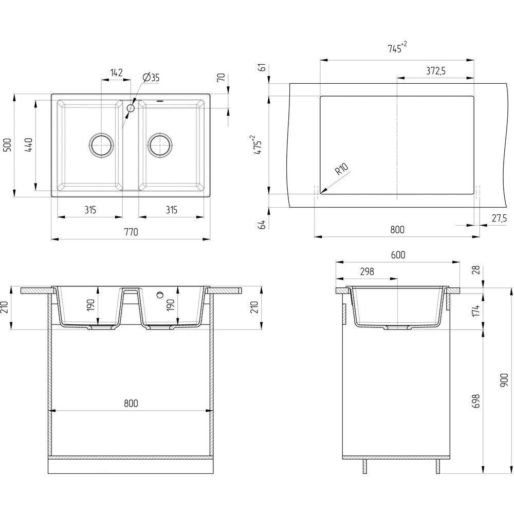 - Удобная установка благодаря готовому отверстию под смеситель и избытку полезных аксессуаров в комплекте;