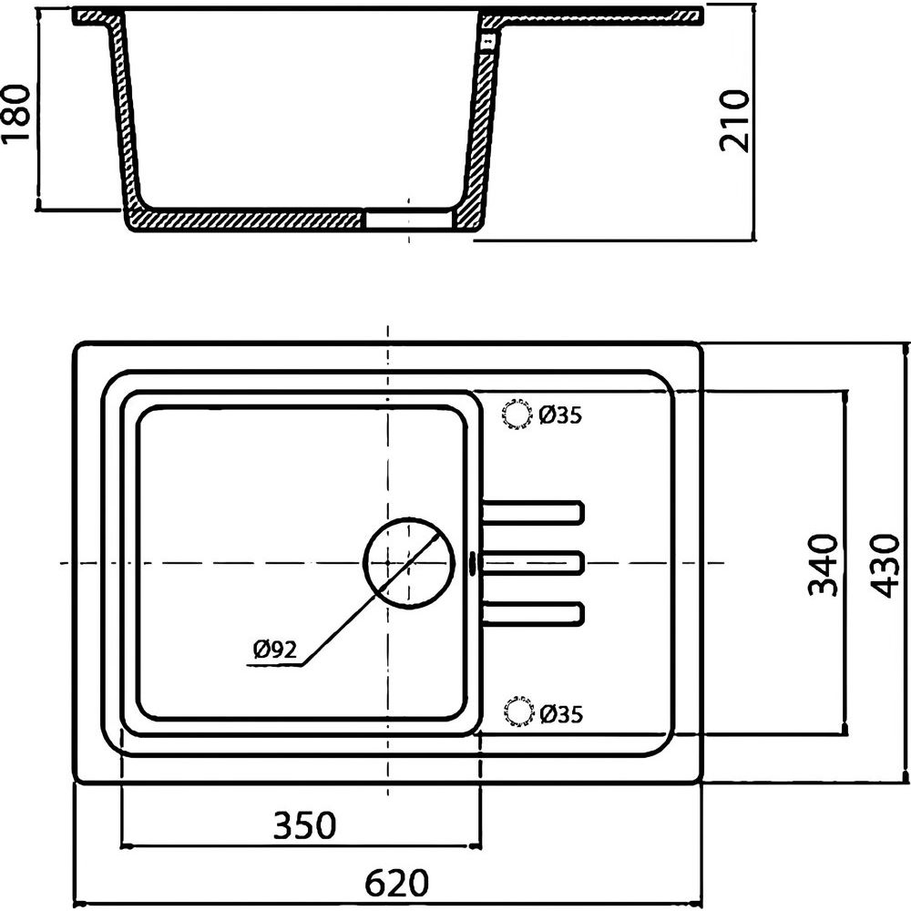 Кухонная мойка Wisent MW620-30 имеет размеры 62x43x20 см, с чашей 35x34 см. Изделие располагается выше уровня столешницы, что упрощает его монтаж. Материал изготовления — искусственный гранит с матовой поверхностью, стойкой к пищевым красителям и бытовым химикатам. В комплекте идет слив-перелив, корзинчатый вентиль и надежная сливная арматура, изготовленная из долговечной нержавеющей стали и никелированной латуни. Диаметр сливного отверстия составляет 9,2 см. Для подключения к канализации предусмотрена гофротруба. Предусмотрены две метки для высверливания отверстий под смеситель, что упрощает установку и позволяет учесть все ваши пожелания при монтаже.