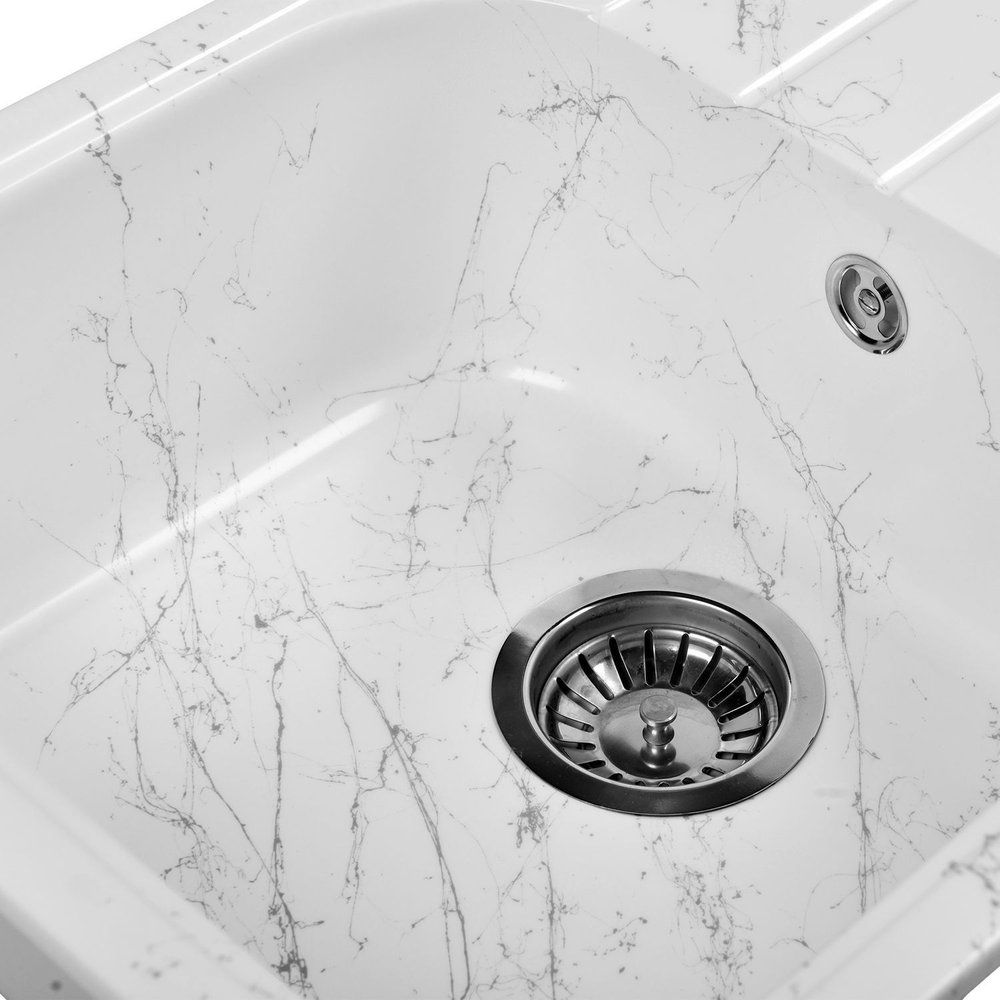 Ищете идеальное сочетание стиля и практичности для вашей кухни? Мойка кухонная Wisent WB20-10 в мраморном бело-сером исполнении станет прекрасным решением. Ее современный дизайн дополняется уникальными характеристиками: устойчивость к термоударам до 180 градусов, защита от ультрафиолета и запахов, а также от микро-царапин и грибковых поражений. Искусственный гранит, из которого изготовлена мойка, не впитывает пищевые красители и впечатляет своей долговечностью.