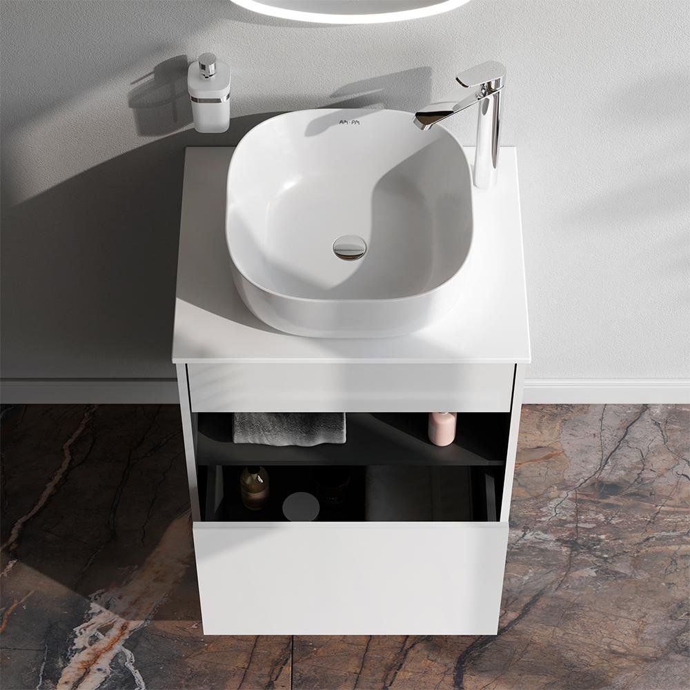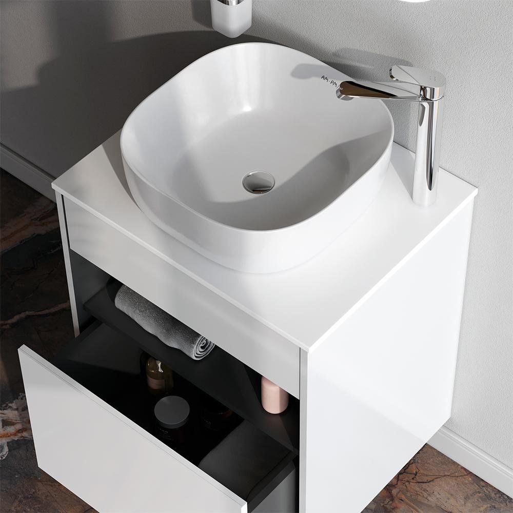 Тумба AM.PM Func 60 в белом глянце отличается универсальными размерами (60x49x70 см) и возможностью установки как на пол, так и на стену. Она изготовлена из качественного ЛДСП с покрытием из эмали и ламината, оборудована механизмом доводчика для плавного закрывания ящиков.