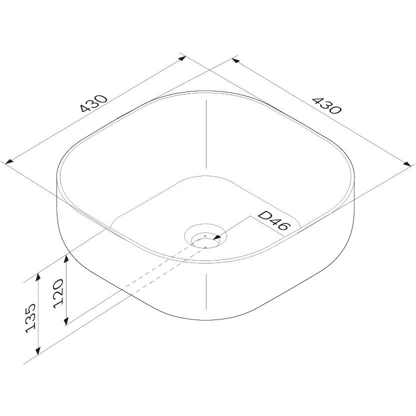 Раковина коллекции выполнена из долговечного фарфора, её размеры составляют 43x43 см. Столешница также является частью комплекта и изготовлена из ЛДСП, что поддерживает единый стиль и эстетику.