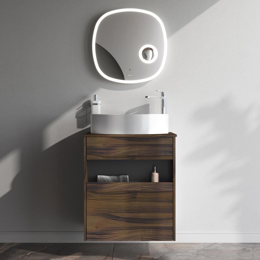 Тумба AM.PM Func 60 изготавливается из ЛДСП с ламинатным покрытием, имеет размеры 60x49x70 см и может устанавливаться как напольно, так и подвесно, включая ящики и открытые полки. Раковина шириной 55 см выполнена из фарфора с гарантией 25 лет, идеально вписываясь в интерьер с минималистичной столешницей без предварительных отверстий под смеситель. Зеркало с инфракрасным сенсором и свето-детекторными возможностями имеет габариты 65x3,5x65 см и обрамлено ламинированной рамкой для гармонии в деталях.