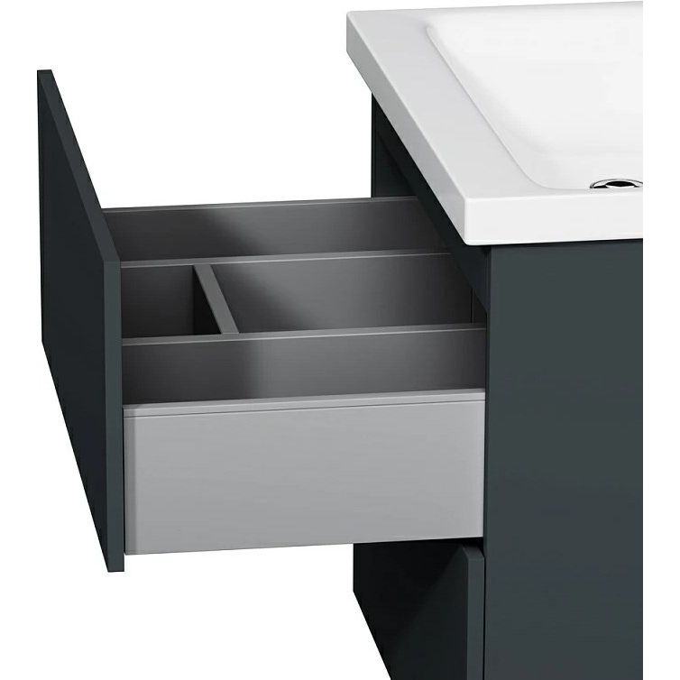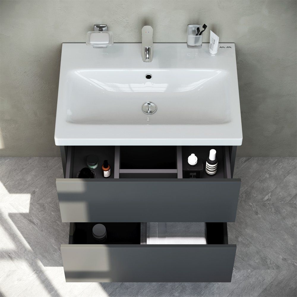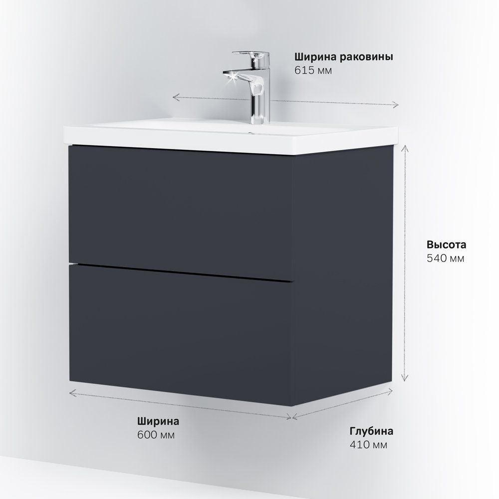 Представляем вам подлинную находку для вашей ванной комнаты — мебель для ванной AM.PM Gem 60, выполненная в стильном графитовом оттенке. Эта подвесная мебель гармонично сочетает в себе минимализм и комфорт, что делает её идеальным выбором для ценителей современного европейского дизайна, созданного в сотрудничестве с DanelonMeroni из Великобритании и Италии. Особо радует, что раковина здесь самая компактная и функциональная на рынке: при проекции в 42 см, она обеспечивает максимальную глубину чаши.