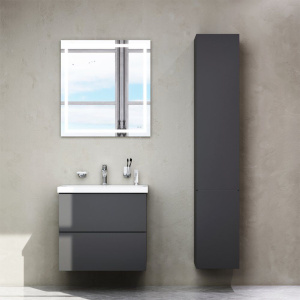 Тумба AM.PM Gem 60 выполнена из высококачественного ДСП с эмалированным покрытием. Она имеет габариты 60x42x54 см и оснащена двумя ящиками с нажимным механизмом открывания, которые закрываются плавно благодаря механизму доводчика. Мебельная раковина AM.PM Gem 60, размером 61x42.5 см, изготовлена из фарфора, оснащена встроенным сливом-переливом и имеет отверстие под смеситель. К комплекту прилагается зеркало AM.PM Gem 55, обеспечивающее комфортную подсветку по периметру и оснащённое электрическим выключателем. Оно выполнено из МДФ и имеет габариты 55x3x70 см.