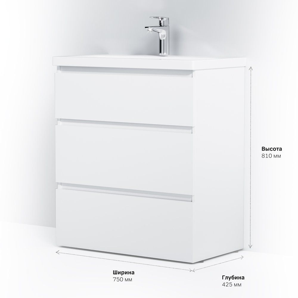 Мебельный комплект включает в себя ножки для дополнительной устойчивости. Однако шкаф-пенал необходимо приобретать отдельно. При подборе сифона важно учитывать конструктивные особенности тумбы и раковины. Донный клапан не входит в комплект и приобретается отдельно. Перед покупкой обратите внимание на специфику установки сифона, чтобы обеспечить его полную совместимость с выбранной моделью.
