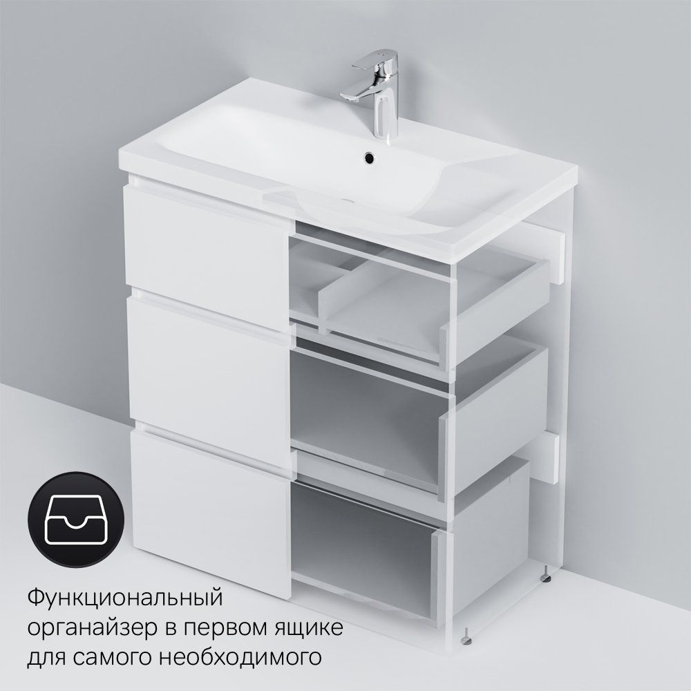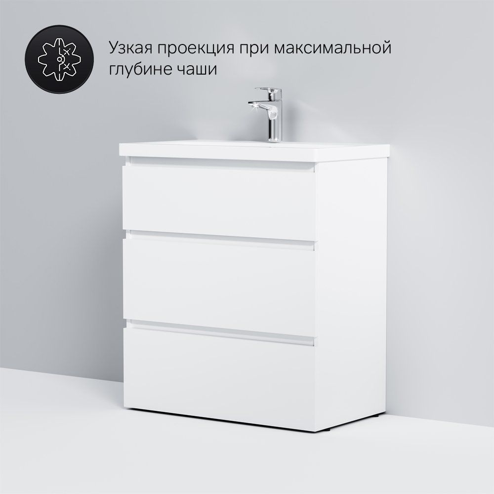 Мебель для ванной AM.PM Gem S 75 напольная – это стильное и функциональное решение для любой ванной комнаты. Этот гарнитур сочетает в себе современный дизайн, надежность и удобство в использовании. В комплект входят тумба, мебельная раковина и зеркало с подсветкой, которые обеспечивают полный комфорт и функциональность в вашем санитарном узле.