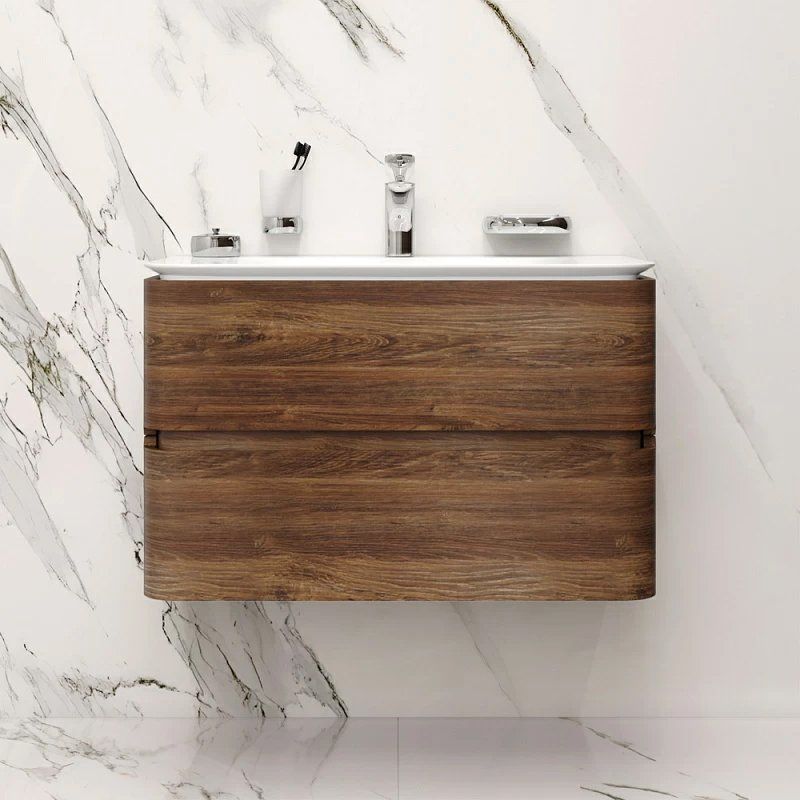 Тумба для комплекта AM.PM Sensation 80, орех: размеры 80x48,5x51,5 см. Материал — МДФ с покрытием из шпона, оборудована выдвижными ящиками и доводчиком. Подвесная конструкция облегчает процесс уборки.