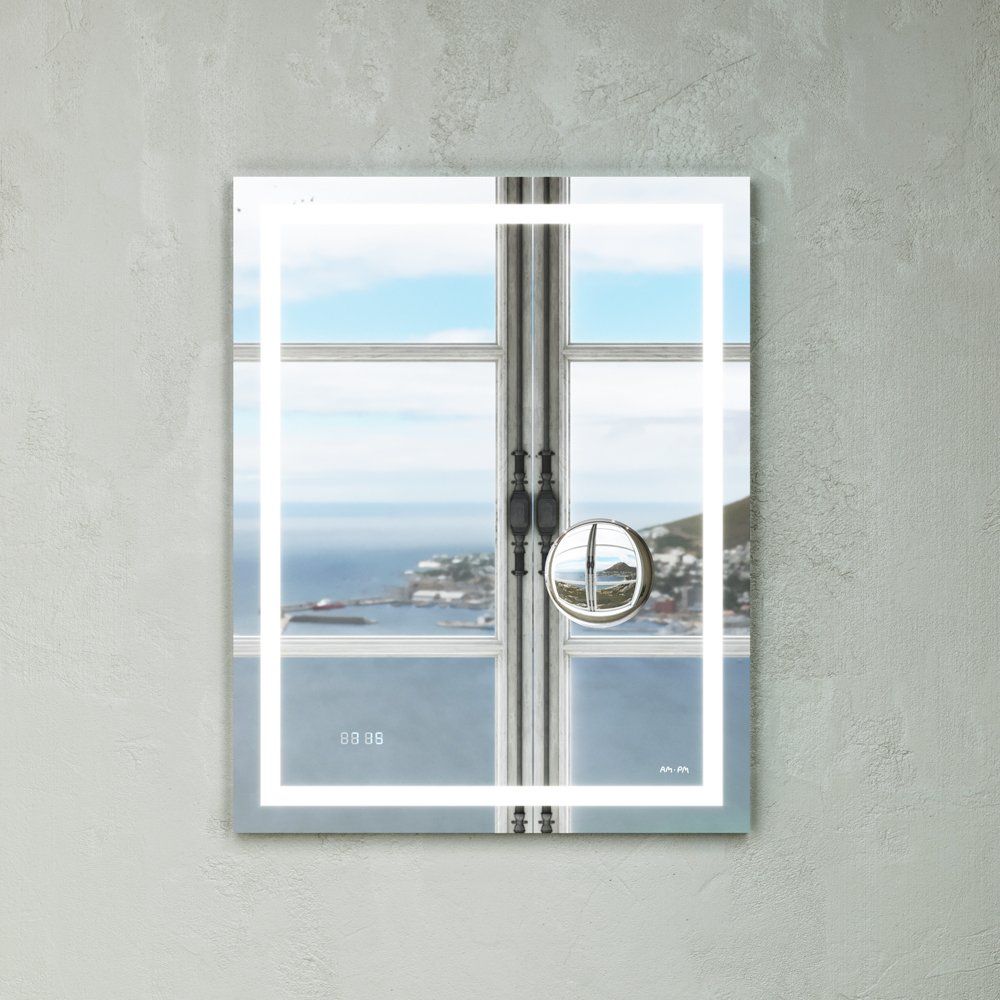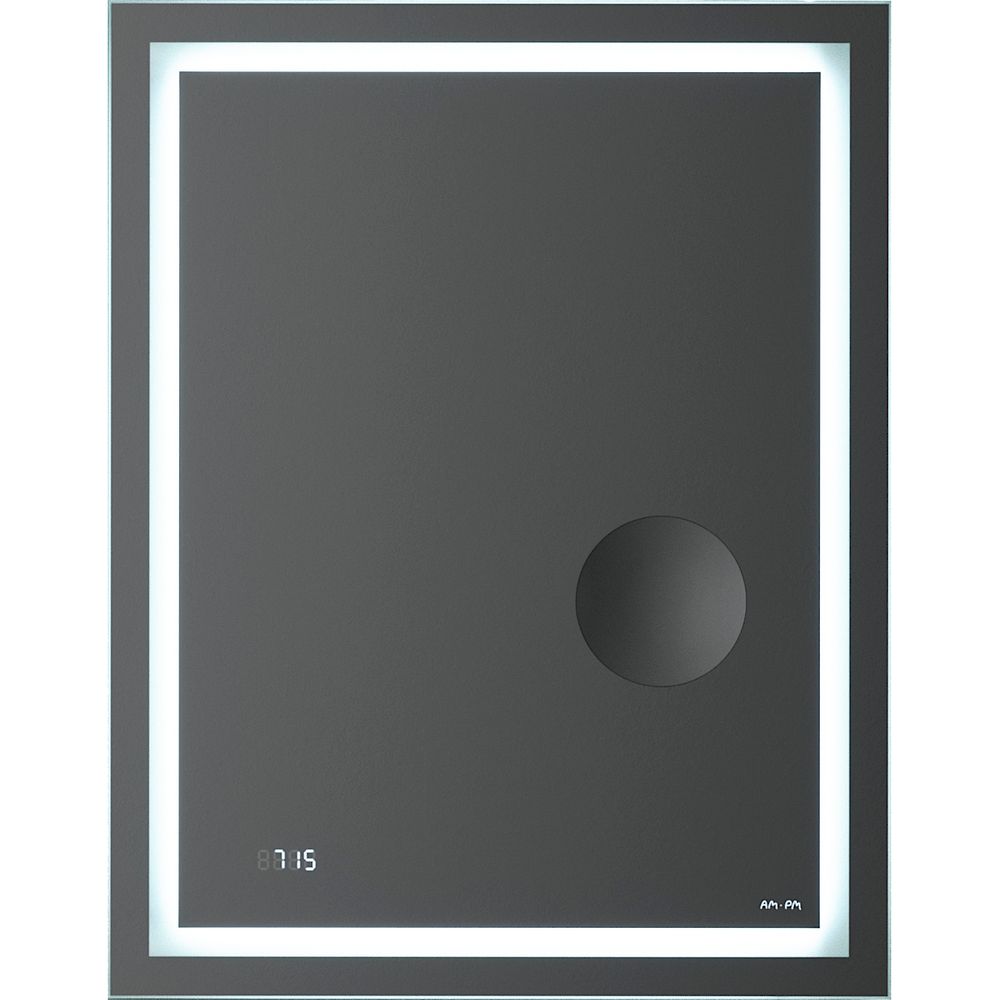 Элегантное зеркало AM.PM Gem 55 включает часы и косметическое зеркало с увеличением, выполнено из прочного пластика с LED-подсветкой и удобно подключается через механический выключатель.