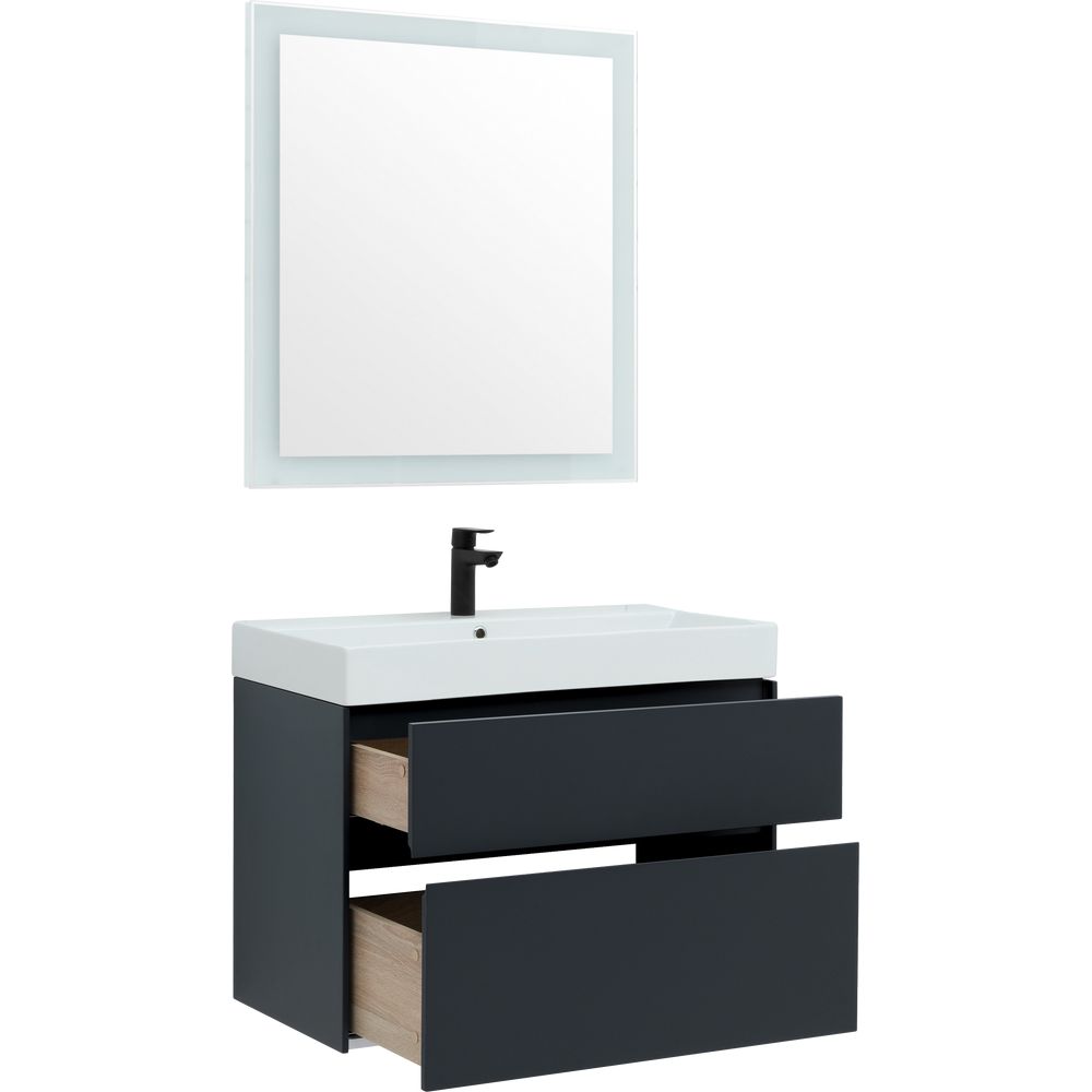 Мебель для ванной комнаты Aquanet Бруклин 85 антрацит представляет собой идеальное решение для создания стильного и функционального пространства. Объединив в себе современные материалы и передовые технологии, данный гарнитур не только украшает интерьер, но и гарантирует долговечность и удобство в эксплуатации. В состав комплекта входят тумба, мебельная раковина и зеркало, каждое изделие из которых продуманно до деталей для вашего комфорта.