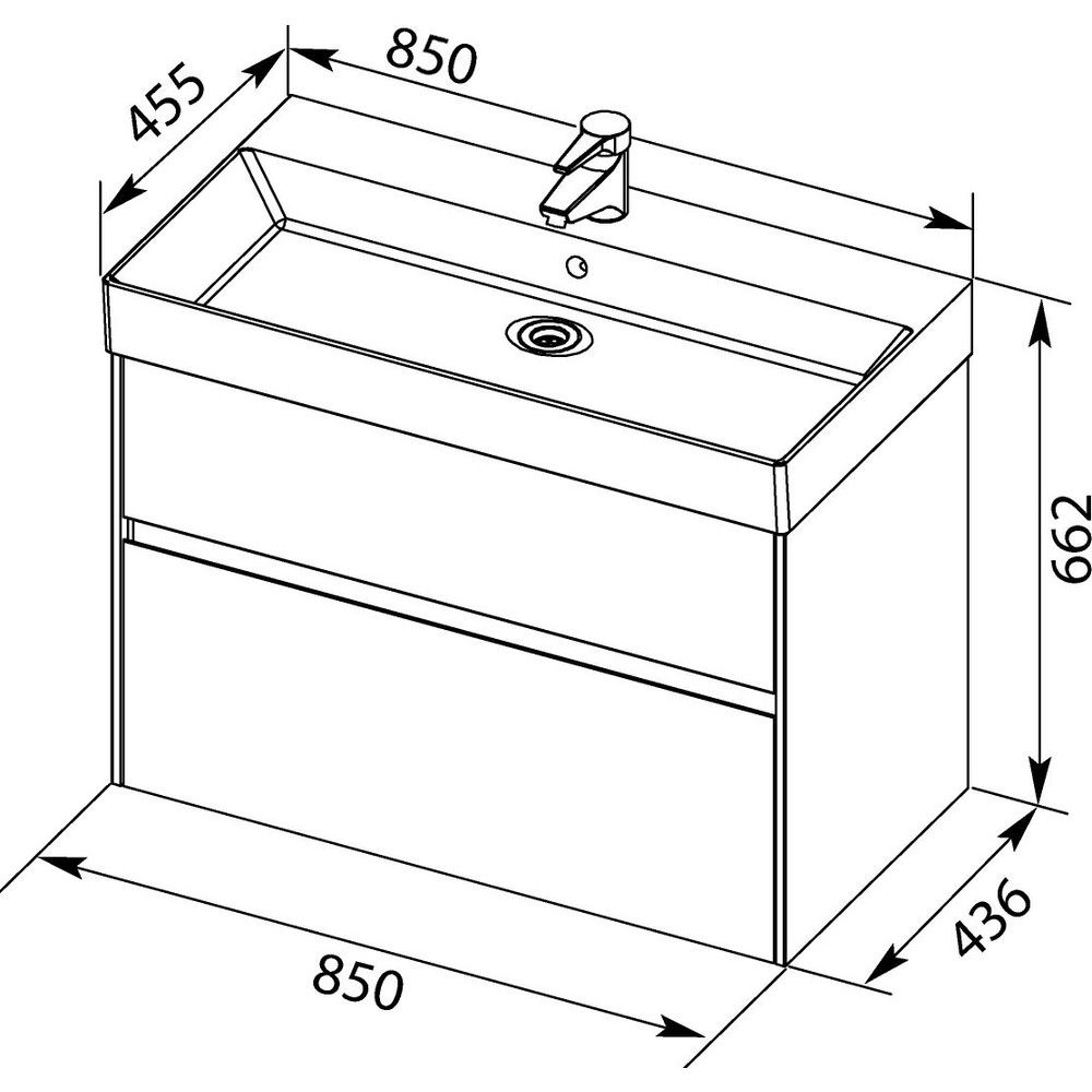 Мебельная раковина: Размеры 85x45,5 см, материал — фаянс, имеется встроенный слив-перелив. Для подключения необходим донный клапан, который приобретается отдельно.
