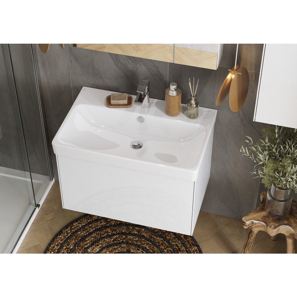 Мебельная раковина AQUATON Сканди Адриана 70 изготовлена из качественного фарфора, ее размеры — 70,5x45 см. Она оснащена встроенным сливом-переливом и одним готовым отверстием под смеситель, что облегчает установку.