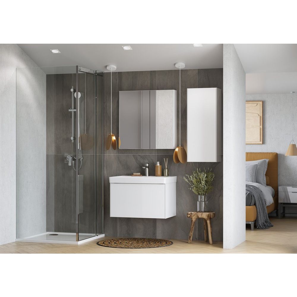 Зеркало-шкаф AQUATON Асти 70 размерами 70x13x70 см прекрасно сочетается с тумбой и раковиной. Он оснащен удобными подвесами и механизмом доводчика для плавного закрытия дверей.