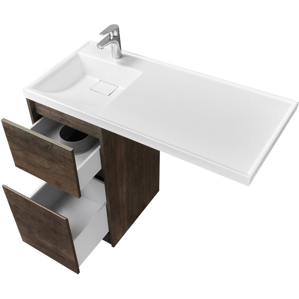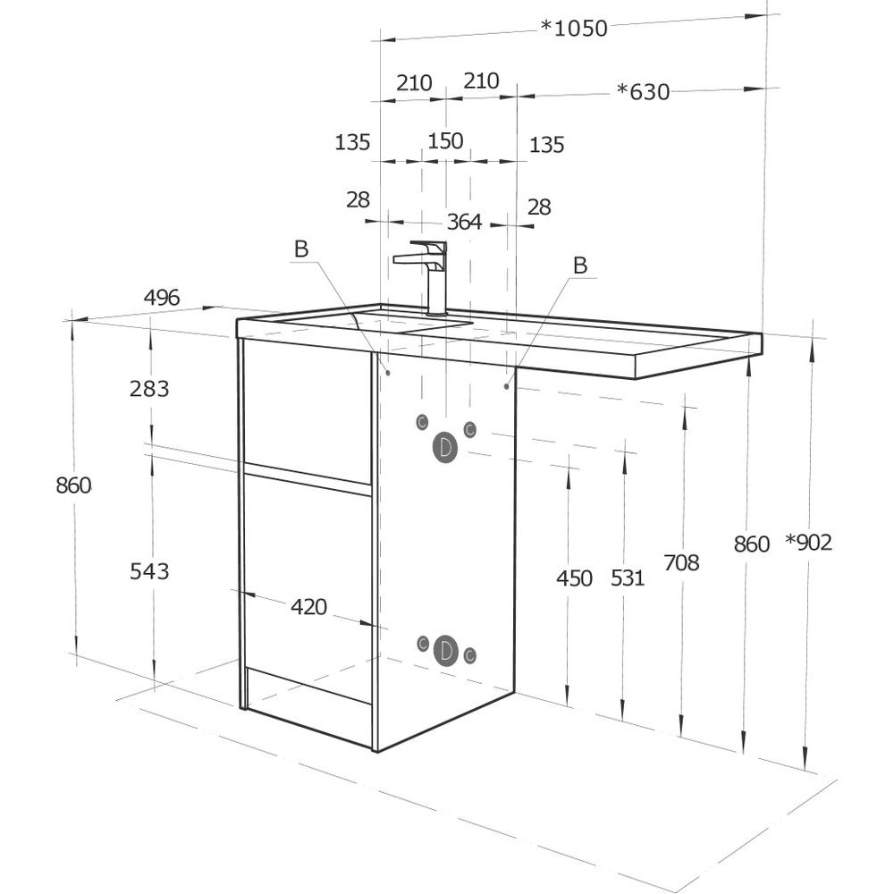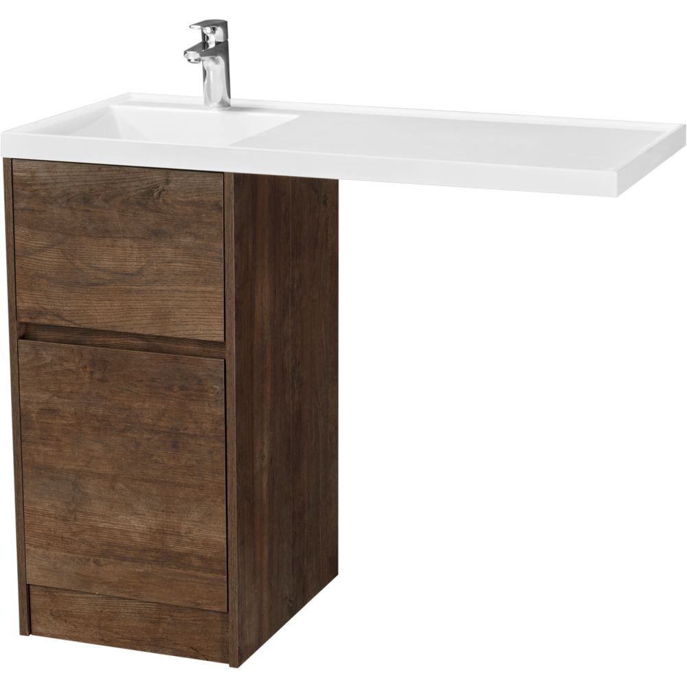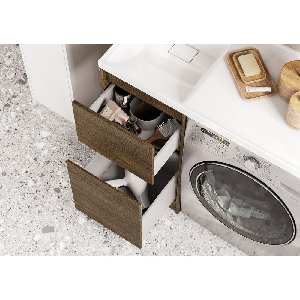 Убедитесь, что у вас есть подходящий сифон для раковины с учетом параметров тумбы. Шкаф-пенал приобретается отдельно. Комплект предусматривает напольный монтаж, однако рекомендуется закрепить тумбу к стене для дополнительной устойчивости. Обратите внимание, что мебель поставляется в собранном виде. В комплектацию входят навесы для удобства установки. Этот набор специально разработан для установки над стиральной машиной, позволяя эффективно использовать пространство.