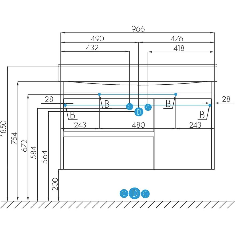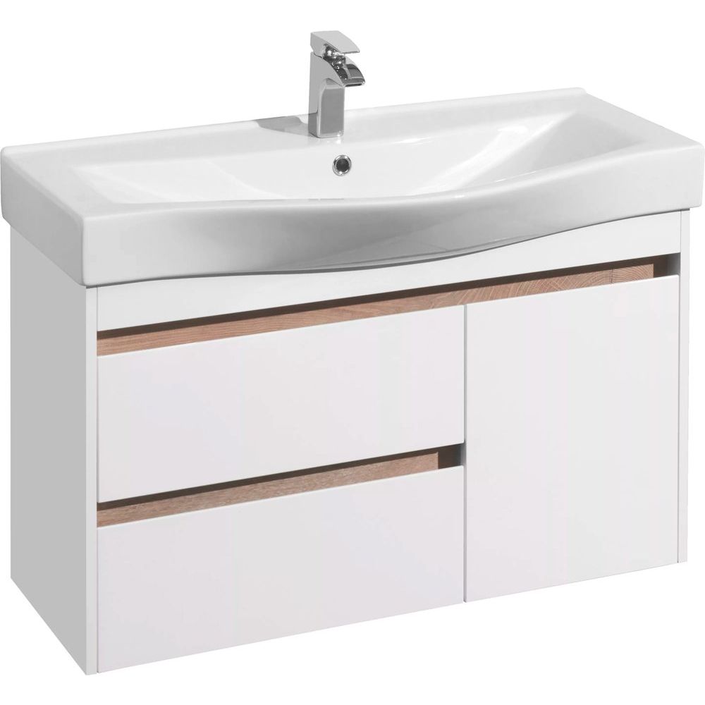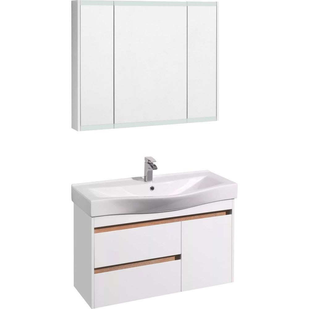 Тумба для комплекта AQUATON 100: Габариты 96,6x35,7x55,4 см, подвесная с механизмом доводчика, обеспечивающим плавное закрывание. Изготовлена из ДСП с эмалевым покрытием.