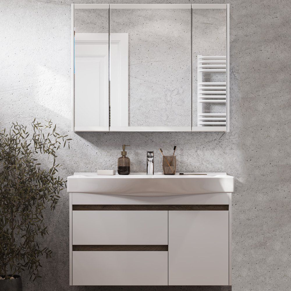 Зеркало-шкаф AQUATON Нортон 100: Размер 100x13x81 см, корпус из ДСП с эмалевым покрытием, оснащено механизмом доводчика для плавного закрытия. Без подсветки.