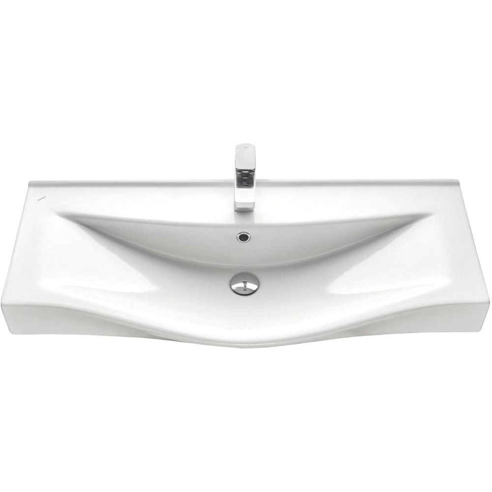 Мебельная раковина AQUATON Беверли 100: Фарфоровая раковина размером 100x48 см, с интегрированным сливом-переливом и отверстием под смеситель. Для сифона диаметром 3.2 см, донный клапан приобретается отдельно.