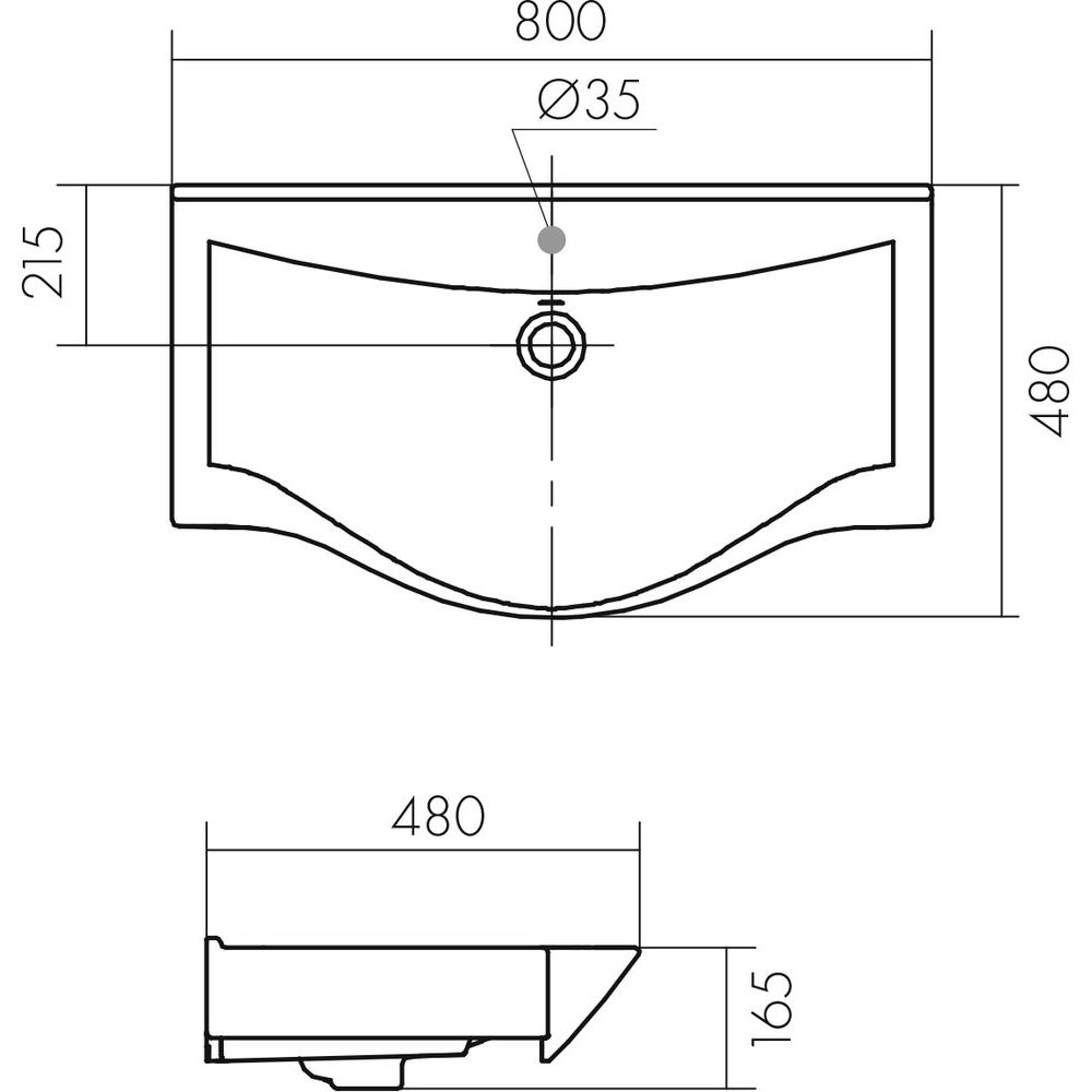 Раковина: 80x48 см, сделана из фарфора. Имеет одно отверстие под смеситель, слив-перелив покупается отдельно. Гарантия 10 лет.