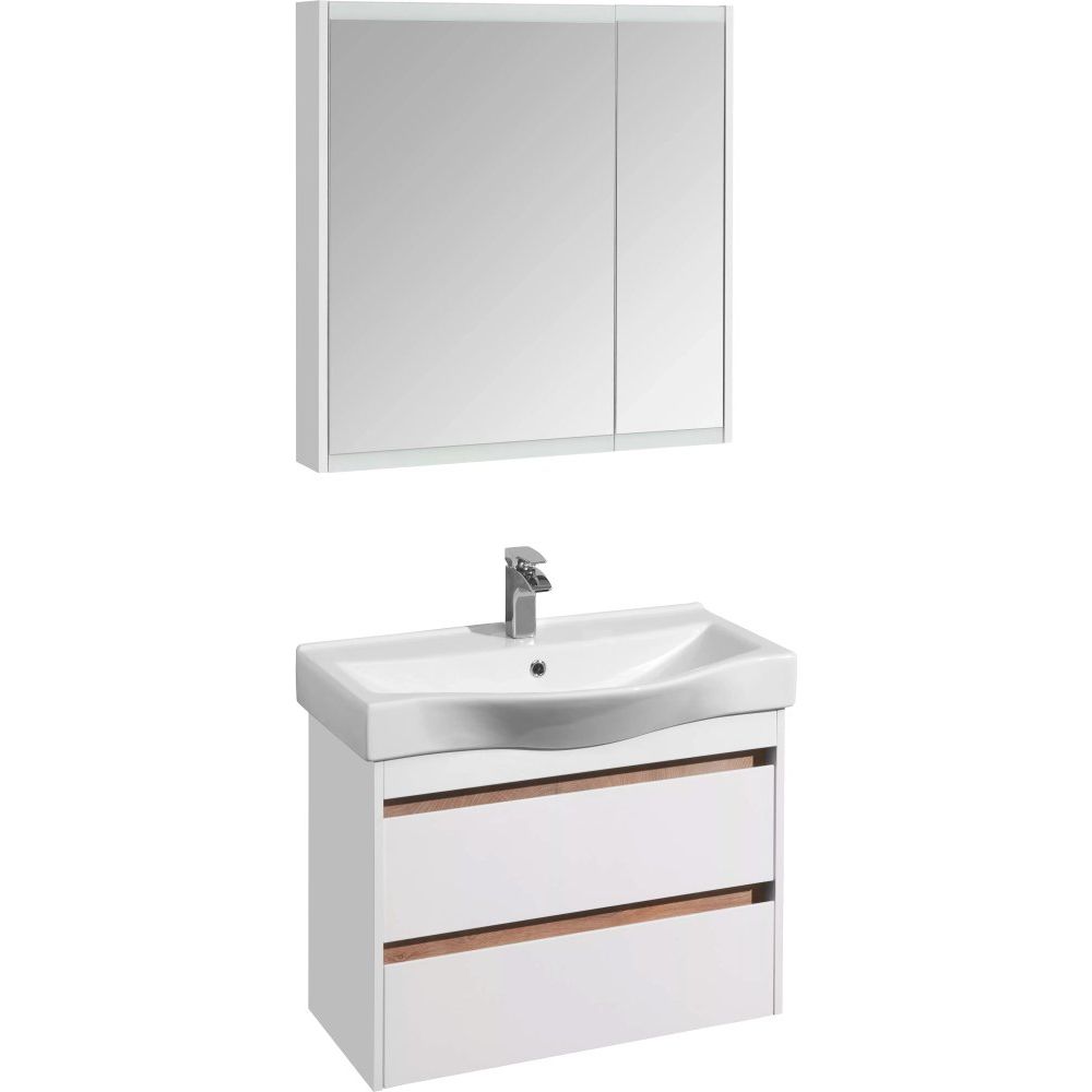 Мебель для ванной комнаты AQUATON Нортон 80 — это сочетание элегантного дизайна и функциональности, представленного в подвесном гарнитуре белого глянца. Это решение станет прекрасным дополнением интерьера любой ванной комнаты, привнося в нее нотки современного стиля и утонченной красоты. Для поддержания безупречного внешнего вида мебели необходимо соблюдать правила эксплуатации, предусматривающие установку в вентилируемых помещениях при ограниченной влажности.