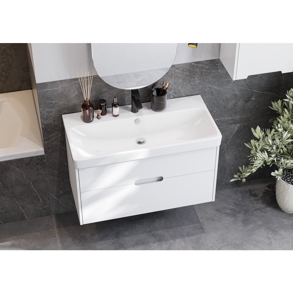 Мебельная раковина Сканди Адриана 90 из прочного фарфора с размерами 90x45 см оснащена встроенными сливом и переливом. Для вашего удобства мебельная раковина имеет готовое отверстие под смеситель, однако донный клапан необходимо приобрести отдельно.