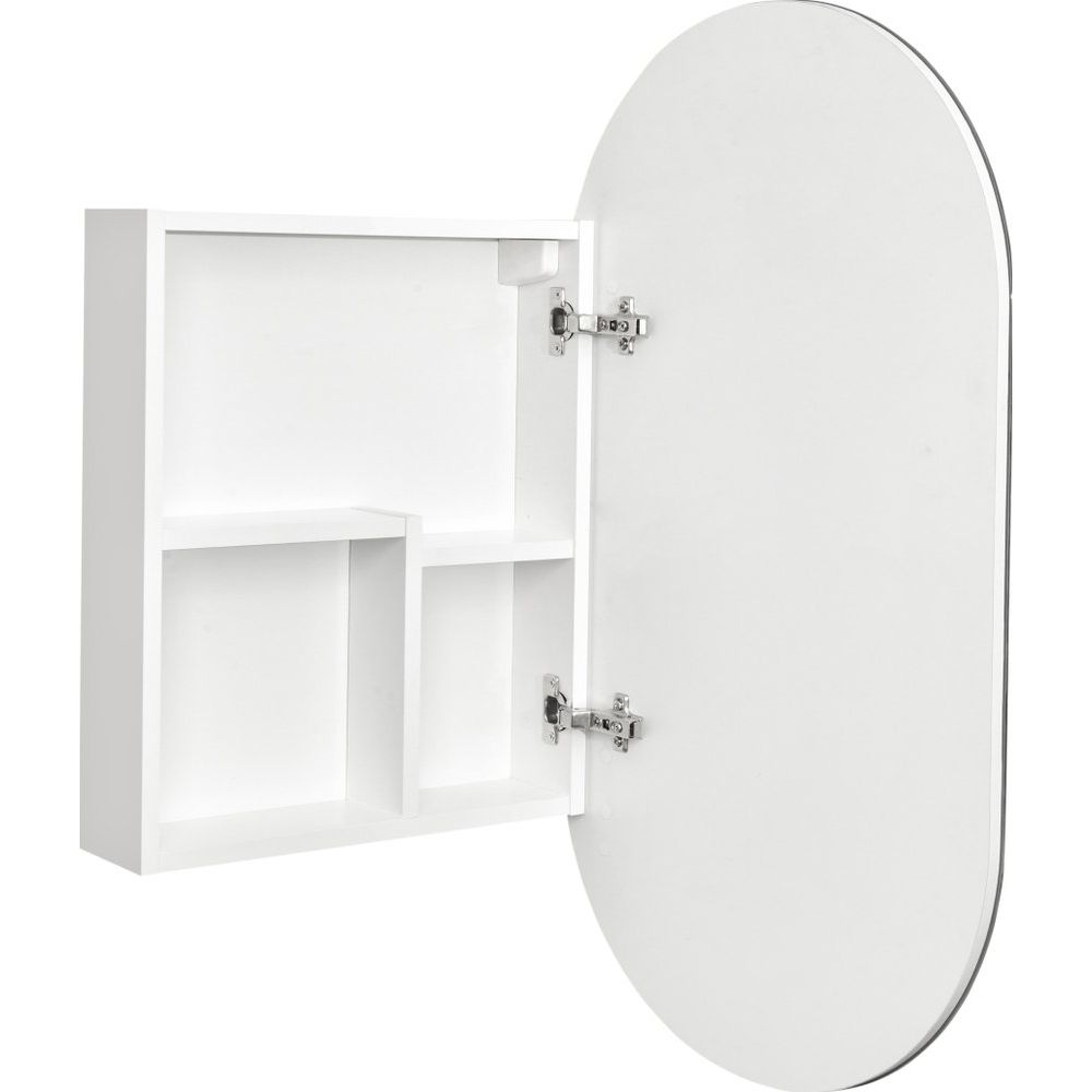 Зеркало-шкаф AQUATON Оливия 50, представленное в белом глянце, выполнено из ЛДСП с покрытием из эмали и ламината. Размеры изделия 50x13,1x90 см, что позволяет удобно размещать его в ванной комнате. Как и тумба, оно оснащено доводчиками для плавного закрытия без лишнего шума.