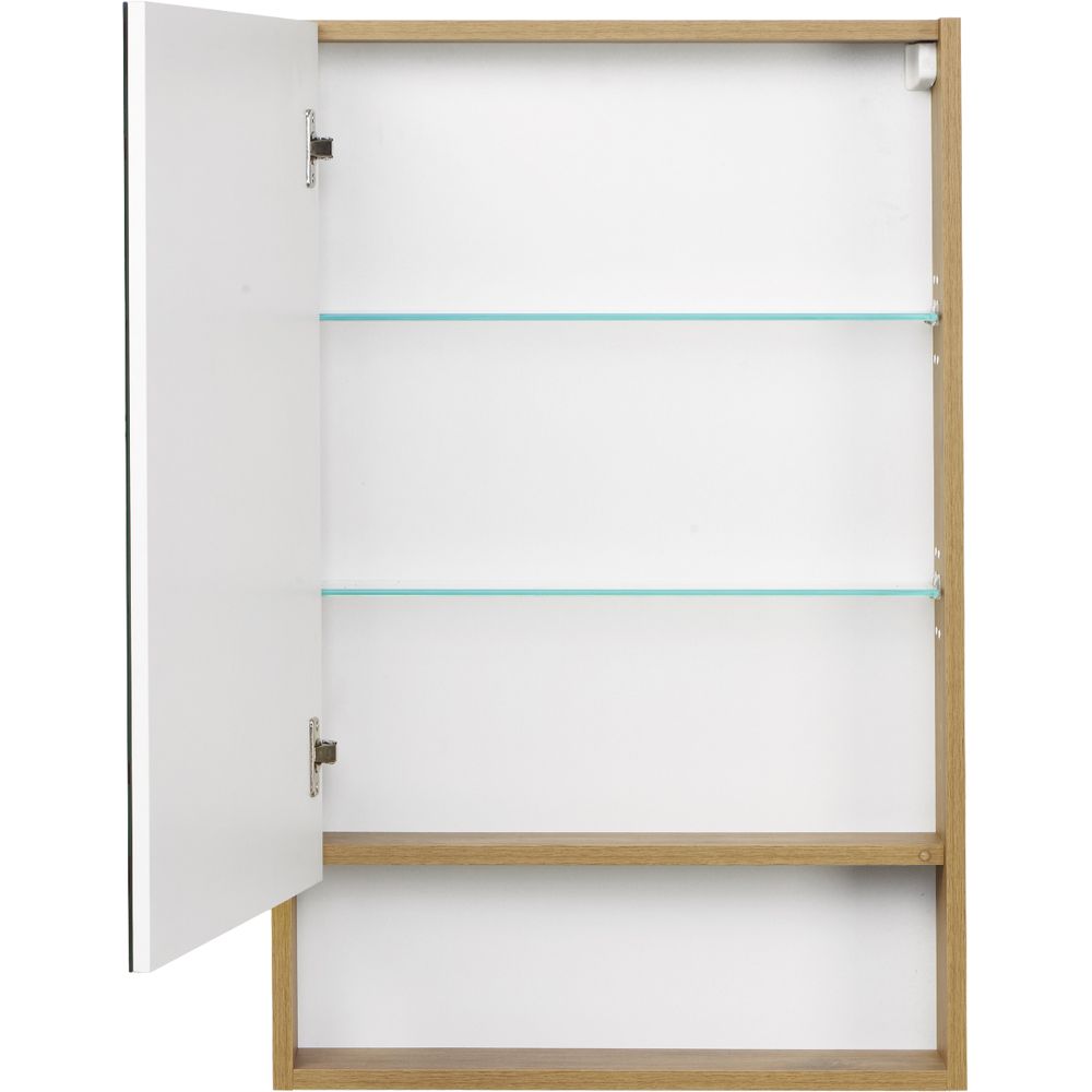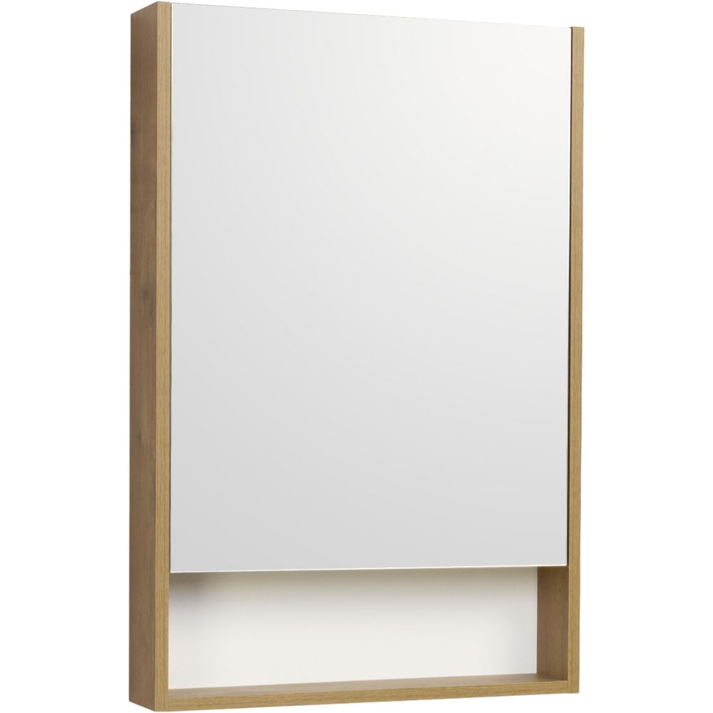 Зеркало-шкаф AQUATON Сканди: размеры 55x13x85 см, выполнено из ДСП с ламинатным покрытием, без подсветки, механизм доводчика для плавного закрывания. Гарантия — 3 года.