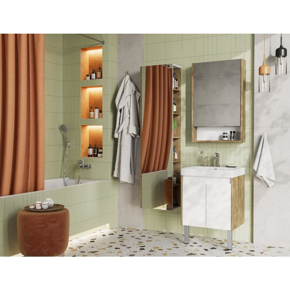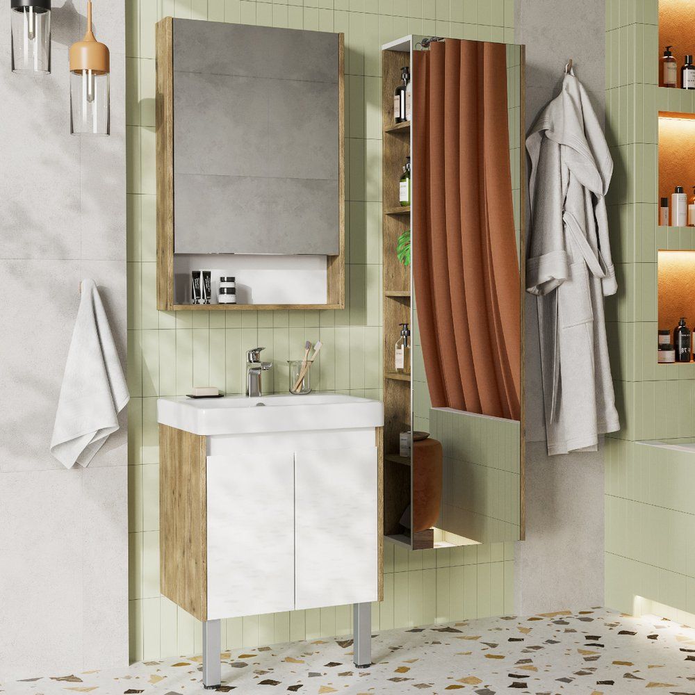 Мебель для ванной комнаты от AQUATON из коллекции Сканди – это идеальный союз современного дизайна и функциональности. Элегантная мебель в белом глянцевом и дубовом рустикальном исполнении придает вашему интерьеру утонченность и теплоту. Гарнитур включает в себя тумбу, раковину и зеркало-шкаф, которые выгодно дополнят ваш интерьер, создавая атмосферу уюта и комфорта в ванной комнате.