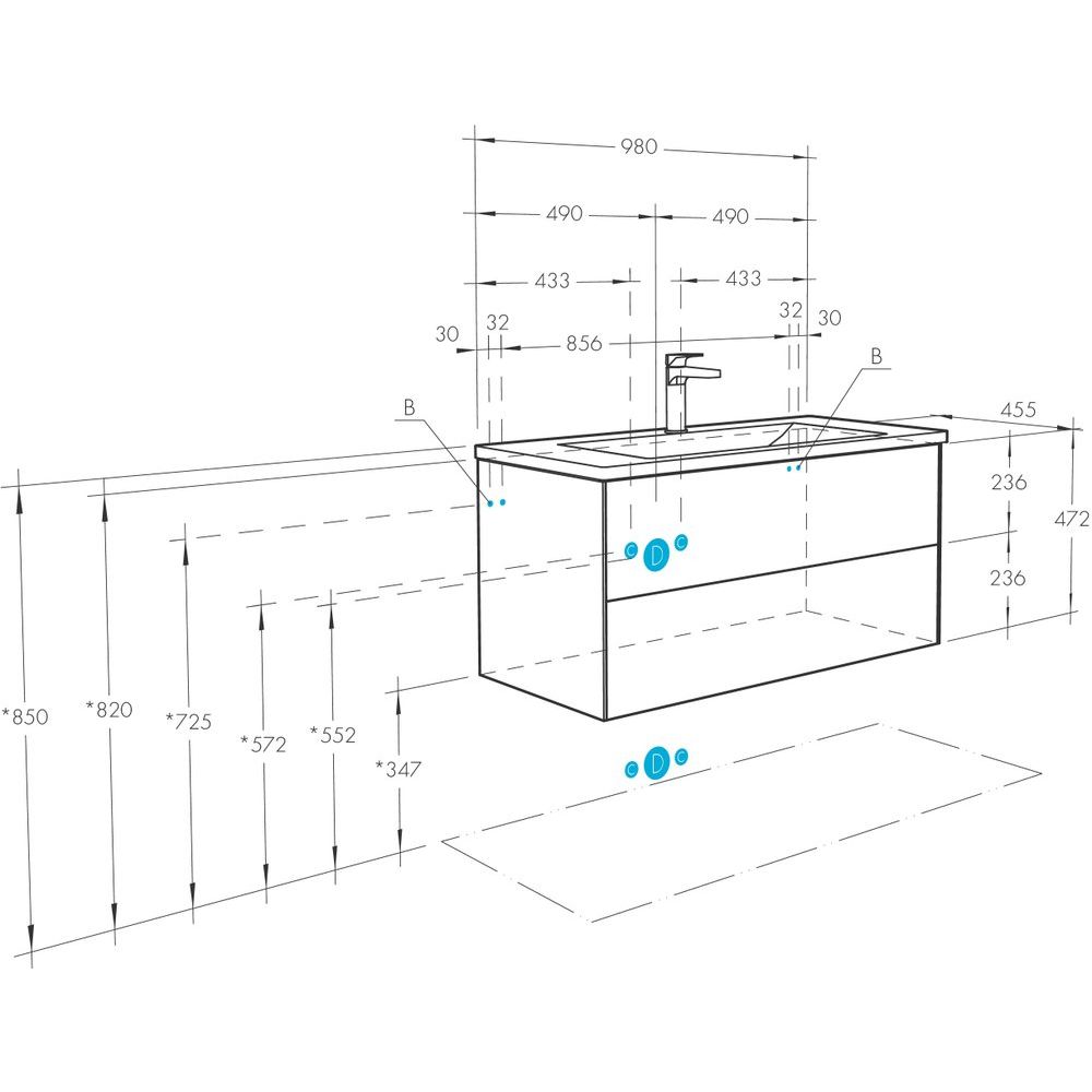 Обратите внимание, что шкаф покупается отдельно, а для установки вам потребуется подобрать сифон, подходящий под конструкцию тумбы с раковиной. Обязательно учитывайте параметры вашего интерьера для гармоничного сочетания с интерьером ванной комнаты.
