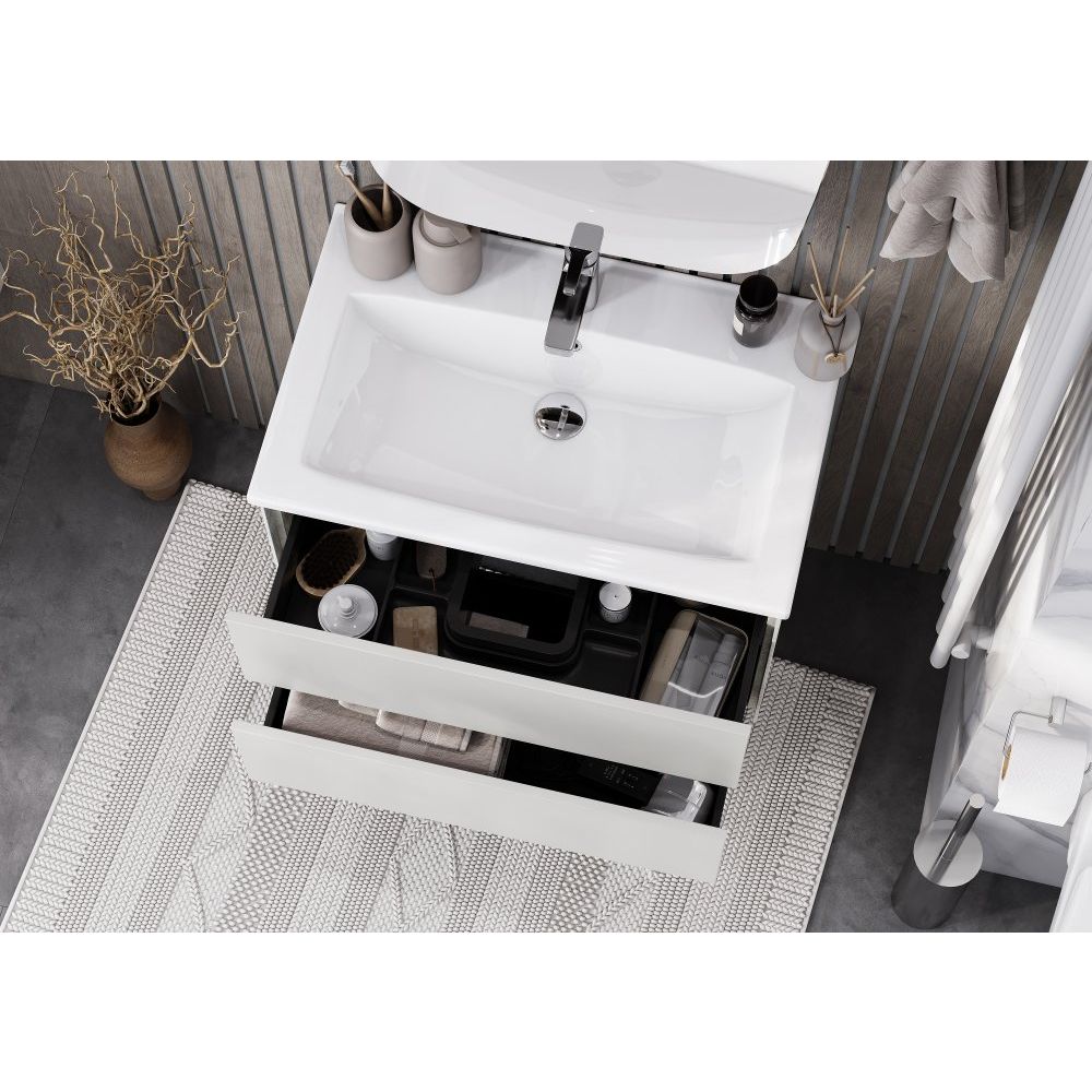 Тумба коллекции AQUATON Сохо 75 имеет габариты 73,4x45,5x47,2 см и выполнена из качественного ЛДСП с ламинированным покрытием. Материал фасада - МДФ, покрытый пленкой, что придает мебели современный вид. Подвесная конструкция обеспечивает легкую установку. Ящики оснащены нажимным механизмом открывания. Гарантия 3 года, изготовлено в России.