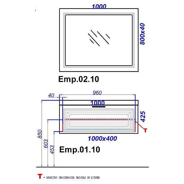 Мебельная раковина: Искусственный мрамор, размеры 100x40 см. Слив-перелив в комплекте, отверстие под смеситель предусмотрено. Донный клапан приобретается отдельно, для сифона диаметром 3.2 см. Гарантия 2 года.
