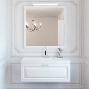 Изысканный стиль в сочетании с функциональностью — это именно то, что предлагает мебель для ванной Aqwella 5 stars коллекции «Империя». В вашем распоряжении зеркало в декоративной раме и подвесная тумба с раковиной из литьевого мрамора. Эта невероятная композиция от Aqwella отражает красоту современной классики: утонченные линии фрезерованной отделки и изысканное сияние кристаллов Swarovski, украшающих ручку. Подвесная конструкция и высокое качество материалов делают эту мебель удобной и долговечной. Вместительный ящик тумбы оснащен функцией полного выдвижения и плавного закрывания, что подчёркивает внимание к деталям. Влагостойкое МДФ с белой высокоглянцевой эмалью обеспечивает долговечность и привносит блеск и элегантность в вашу ванную комнату. Зеркало использует серебряную амальгаму, для чёткого отражения, и может устанавливаться как горизонтально, так и вертикально.