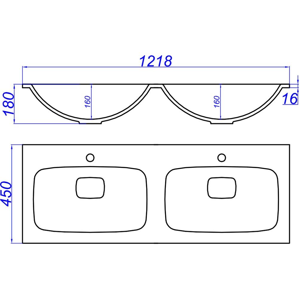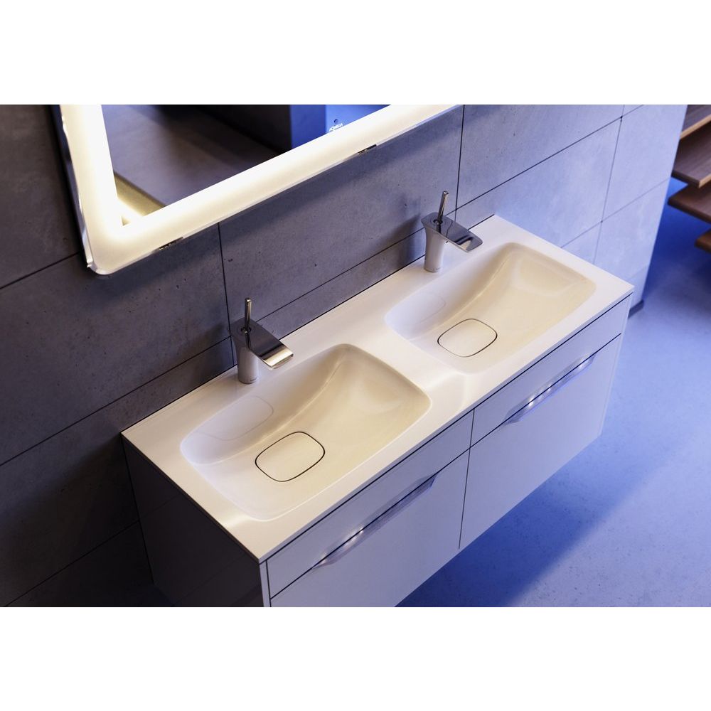 - Двойная раковина из искусственного мрамора, простая в уходе и с долговечным покрытием.