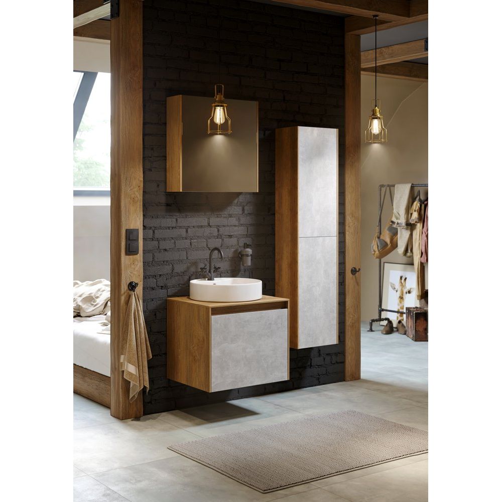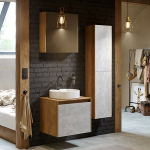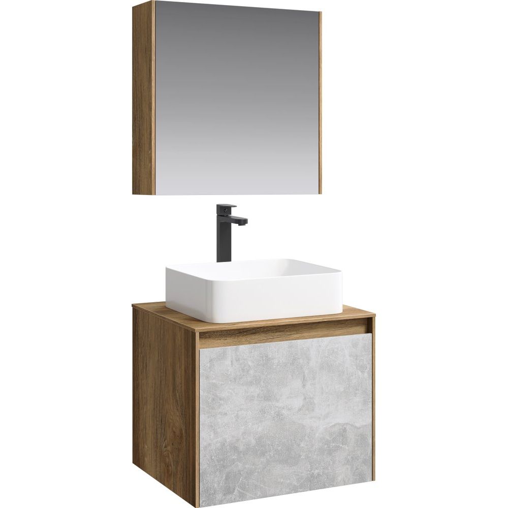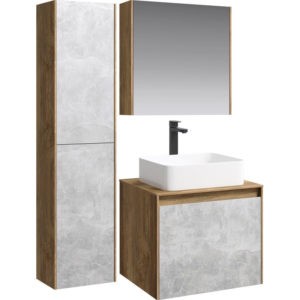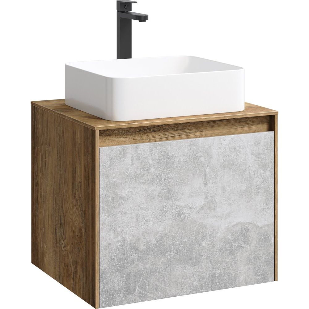 Мебель для ванной Aqwella 5 stars Mobi 60 сочетает в себе стиль и функциональность. Коллекция Mobi предлагает уникальную возможность комбинировать фасады и корпуса трех цветов: светлый бетон, дуб балтийский и белый глянец. Благодаря этому гарнитур можно легко вписать в любой интерьер. Особая конструкция позволяет устанавливать накладной умывальник в любом понравившемся вам месте, что добавляет гибкости в размещении. Тумба оснащена двумя ящиками — основной и внутренний, который укомплектован практичным пластиковым разделителем для хранения мелочей, а конструкция тумбы обеспечивает удобное подключение коммуникаций.