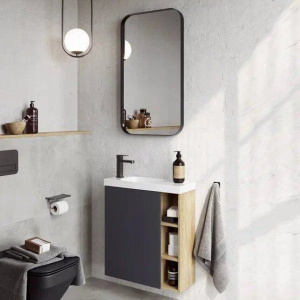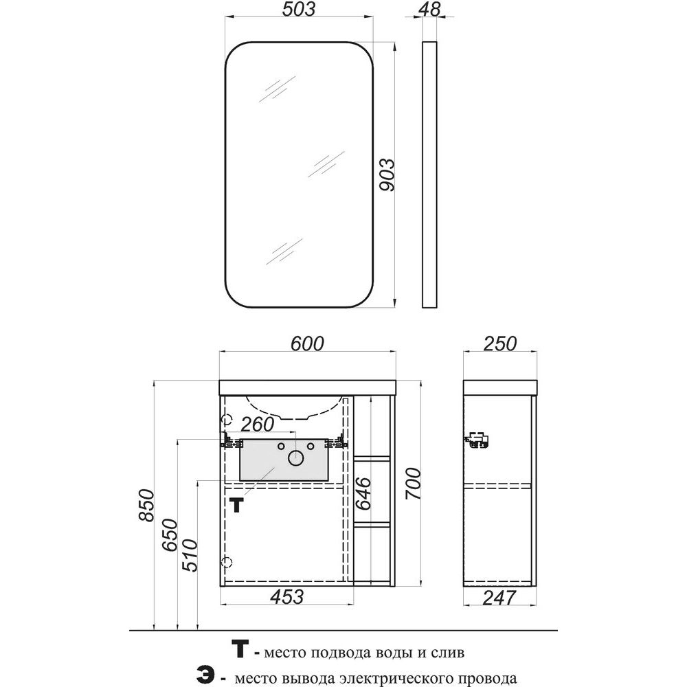 - Комплект включает все необходимое: тумбу, раковину и зеркало, являясь законченным решением для ванной.