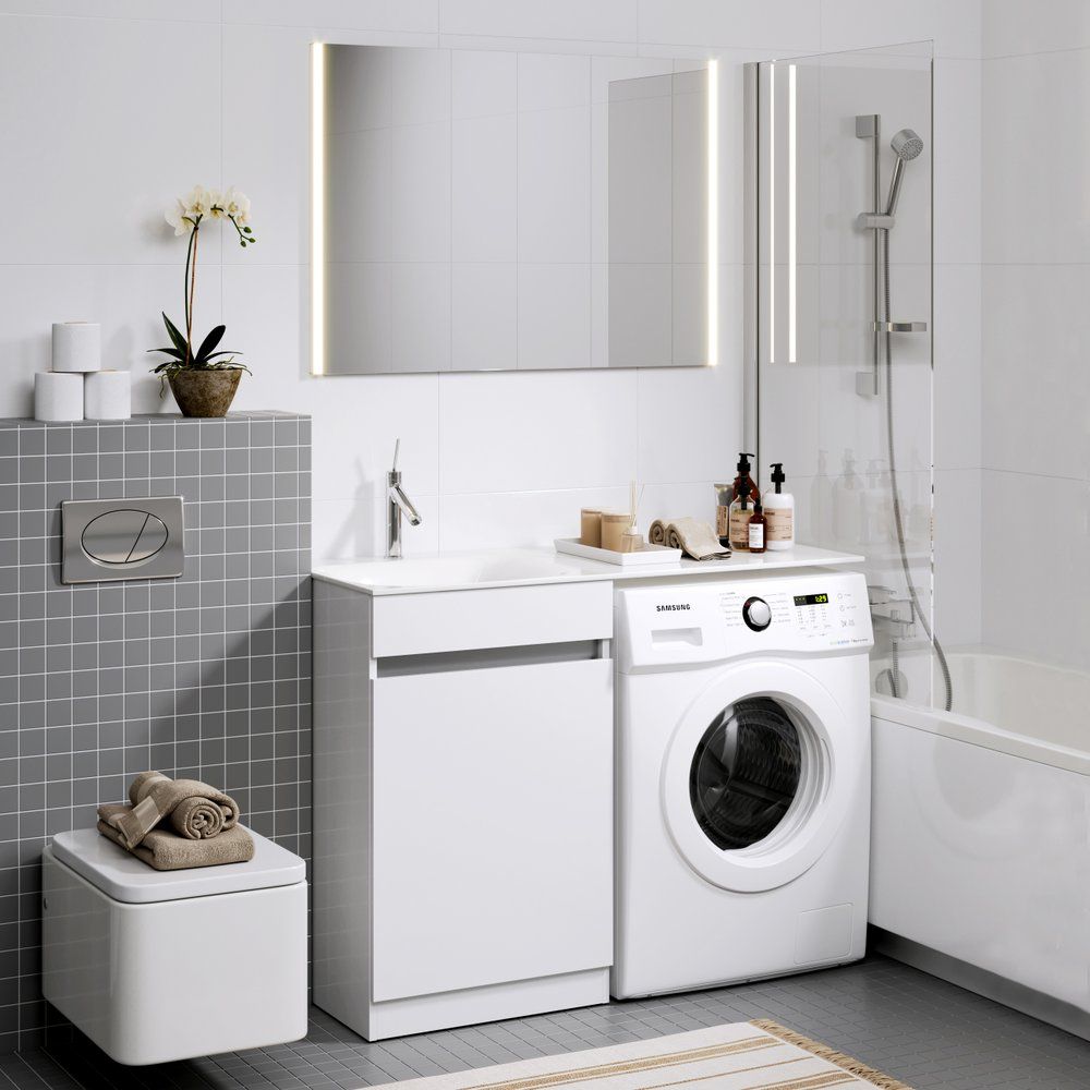 - Эффективная организация пространства в ванной комнате с возможностью установки над стиральной машиной.