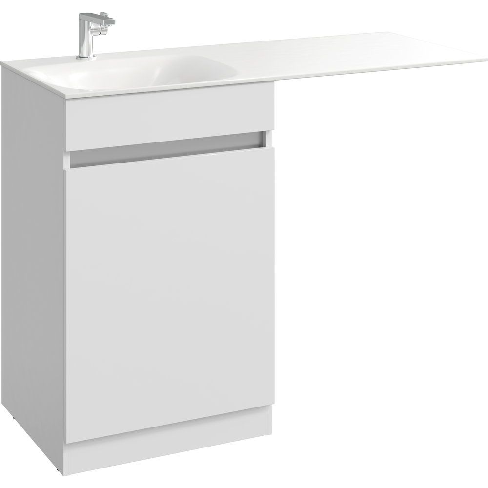 Мебель для ванной комнаты Aqwella Forma из коллекции Forma – это современное решение для рационального использования пространства. Она отлично подойдет для ванных, где установлена стиральная машина, так как ее конструкция позволяет разместить технику под широким крылом умывальника. Благодаря эргономичному дизайну, вы не теряете места, а приобретаете комфортную зону для умывания и хранения. Основное отделение тумбы располагается слева и включает выдвижную секцию с бельевой корзиной, а также отсеки для средств гигиены и бытовой химии. Надежные направляющие от австрийского производителя Blum обеспечивают плавное и аккуратное движение ящика даже при полной загрузке. Мебель изготавливается из влагостойких материалов, таких как ЛДСП и МДФ, которые не способствуют появлению плесени и легко очищаются благодаря защитному покрытию эмалью и ламинатом. Блестящий белоснежный цвет в сочетании с лаконичным дизайном гармонично впишется в любой современный интерьер, особенно если дополнить ее стильным зеркалом с подсветкой и инфракрасным управлением из серии SM.