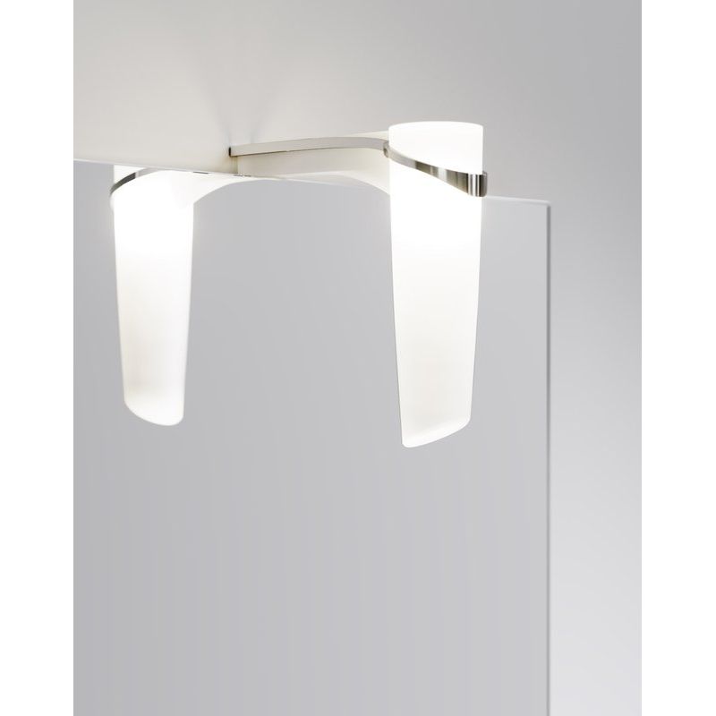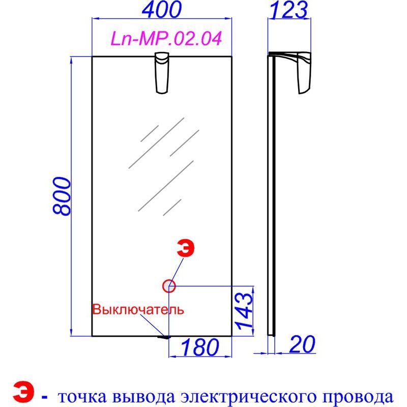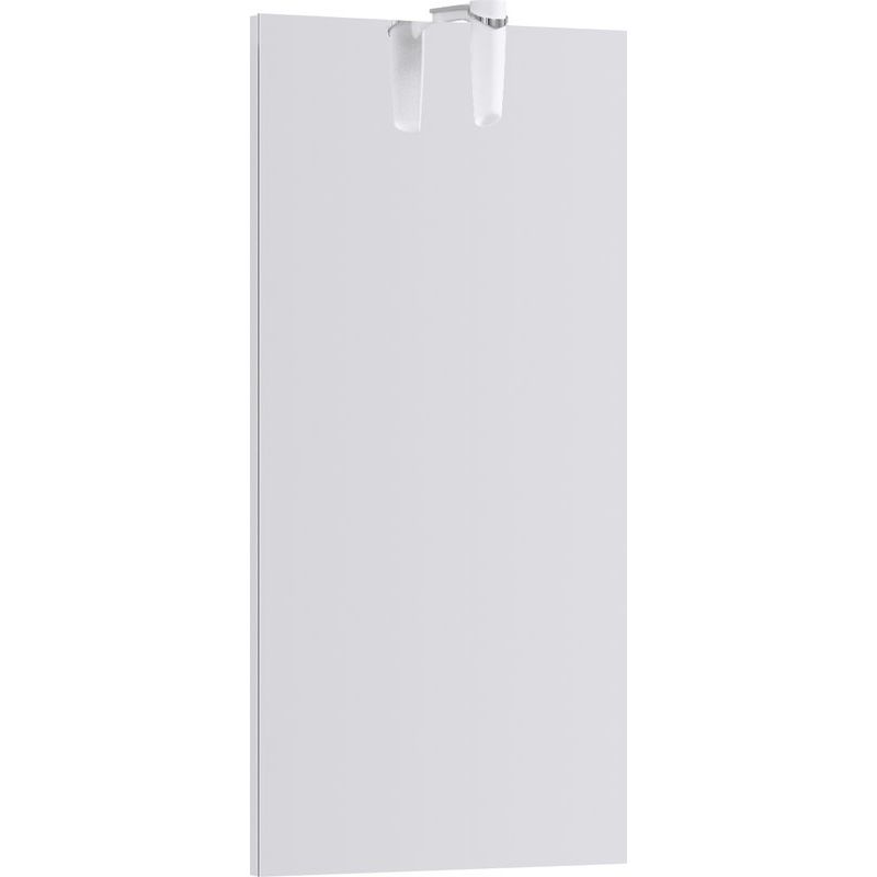 Зеркало со светильником размером 40x12,3x80 см также выполнено из ДСП с ламинированным покрытием. Включает механический электровыключатель и оснащено подвесами для удобной установки.