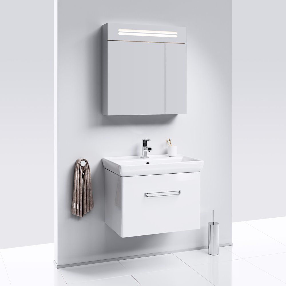 Тумба для комплекта Aqwella Neo 70 подвесная имеет размеры 64,6x44,4x45,5 см. Изготовлена из ДСП с эмалированным и ламинированным покрытием и дополнена хромированной фурнитурой. Зеркало-шкаф с внешней подсветкой размером 70x15,1x76 см включает механизм плавного закрывания и механический электровыключатель. В комплекте также идет мебельная раковина Dreja Q 70 из фаянса, шириной 70,4 см и глубиной 47,6 см, с интегрированным сливом-переливом и одним отверстием под смеситель. Все элементы имеют гарантии от 2 до 5 лет. Сборка производится в России и Чехии.