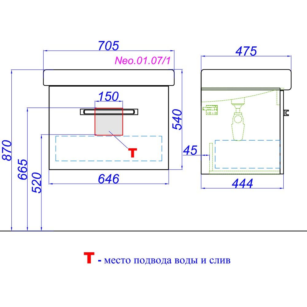 Мебель для ванной Aqwella Neo 70 — это идеально сбалансированное решение для современного интерьера, сочетающее в себе стиль и функциональность. Каждый элемент комплекта выполнен из материалов, устойчивых к влажности и перепадам температуры, что гарантирует долговечность использования. Эмалевая поверхность защищает от воздействия воды, продлевая первозданный вид мебели. Ящики с направляющими Blum делают использование особенно комфортным благодаря системе мягкого закрывания, а встроенная подсветка добавляет утончённости и практичности.