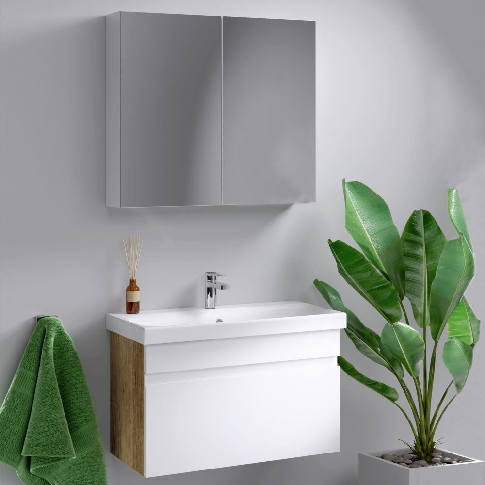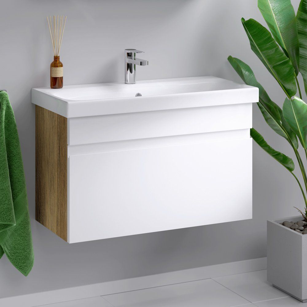 Комплект мебели для ванной комнаты Aqwella Smart 80 в цвете "дуб балтийский" – это идеальный выбор для тех, кто ценит стильную и функциональную обстановку. Эта подвесная конструкция создана для максимизации использования пространства и оснащена керамической раковиной Moduo Slim от признанного польского производителя Cersanit. Особенностью комплекса является продуманная система хранения, включающая вместительный ящик и двустворчатый зеркальный шкаф для ваших гигиенических принадлежностей и косметики. Все элементы успокаивающе закрываются благодаря доводчикам и направляющим плавного хода. Высококачественные материалы обеспечивают надежность и долговечность, позволяя мебели противостоять воздействиям влаги.